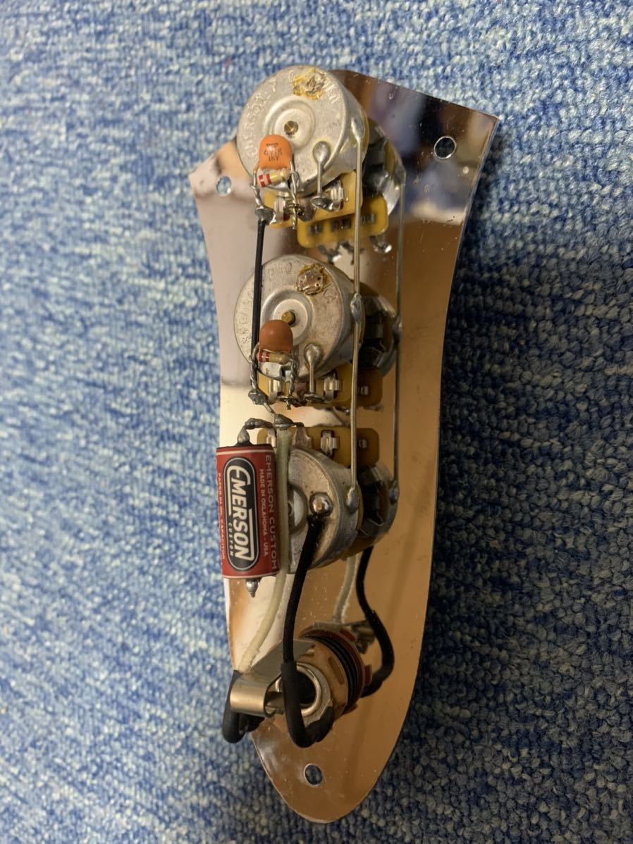 (1) 0,047uf Emerson Paper dans de l'huile , (1) Volume Mod , Diagram Wiring Diagram I want to replace my guitar's wiring, would it make a difference Kit pré-câblé Emerson Custom Precision Bass (points 250 K ohm et capacité 0,047uf) - Filé à la main aux États-Unis avec fil de 22 AWG vintage pour un son et un look vintage (2) Potentiomètre de tige solide CTS 250 K avec axe de 250 (pickguard mount seulement). Les connexions soudées au jack d'entrée sont isolées avec un dissipateur de chaleur pour garantir une durabilité et une longue durée de vie. Marque. Emerson Custom · Couleur. Argent,Noir · Type de matériau supérieur. Acajou · Type de matériau de chaîne. Acier allié · Instrument. Basse électrique · Mode de... Please email US If you need a long manche) Kit pré-câblé Emerson Custom Precision Bass (points 250 K ohm et capacité 0,047uf) - Filé à la main aux États-Unis avec fil de 22 AWG vintage pour un son et un look vintage. Kit Emerson Basse Precision Emerson Custom Prewired Kit Les Paul Push Pull Long Shaft Câblage Basse Vintage Main USA