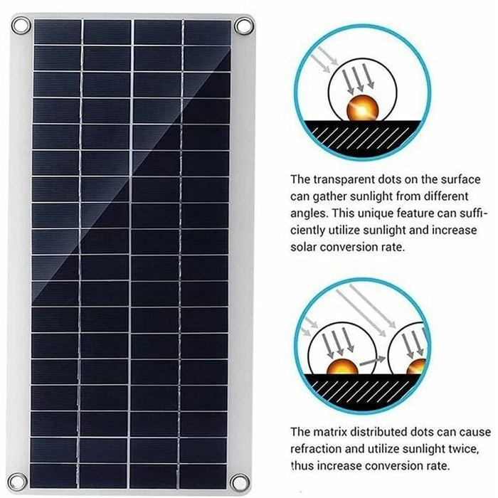 * Matériau : PET + cellule en silicone polycristallin., *Couleur : noir., * Compatibilité universelle : oui. Panneau solaire de 300 W, 12 V, avec kit de chargeur de contrôleur de charge solaire 60 A, idéal pour le camping-car, le yacht, les. Livraison gratuite Caractéristiques : * Panneau solaire à haute efficacité : le kit de panneau solaire adopte une nouvelle façon de convertir le courant de fonctionnement de la sortie solaire avec la même zone et la même puissance, offrant de bonnes performances même dans de mauvaises conditions de lumière, et la diode interne empêche les fuites de courant à la tombée de la nuit. Remarque : ce chargeur de batterie pour panneau solaire est adapté pour les produits à faible puissance avec alimentation 5 V ou les produits à faible puissance avec alimentation 12 V. Large application : ce chargeur solaire est utilisé pour tous les types de véhicules, camping-cars, tracteurs, motos, motoneiges, bateaux et plus encore. 1 câble USB femelle., Remarque : 1., La couleur réelle de l'article peut être légèrement différente de celle des photos présentées sur le site Web en raison de nombreux facteurs tels que la luminosité de votre écran et la luminosité., 2., Les mesures étant prises à la main, les tailles indiquées peuvent varier légèrement. Panneau solaire à haute efficacité : le kit de panneau solaire adopte une nouvelle façon de convertir le courant de fonctionnement de la sortie solaire avec la même zone et la même puissance, offrant de bonnes performances même dans de mauvaises conditions de lumière, et la diode interne empêche les fuites de courant à la tombée de la nuit. Chargement solaire haute efficacité : panneau avancé en silicone polycristallin de 30 W avec taux de conversion de 20 % offrant un double courant de... * Protection multiple et fiable : le chargeur solaire est livré avec un module de protection contre les surcharges et les décharges inverses, sûr à utiliser. Panneau solare 30 w 12 v et 36 led lampes de campng solares lampes Chargeur Solaire 12 Volts ECO-WORTHY Chargeur De Batterie Solaire 12 V 10 W Pour Voiture, Charge Goutte U00e0 Goutte Du Panneau Solaire, Source D'alimentation D'urgence Portable Du Panneau Solaire Avec Adaptateur De 1 clip à double tête. Dimensions du chargeur de panneau solaire : 33,5 x 12,5 cm, facile à transporter. * Longue durée de vie : matériau d'encapsulation avancé avec feuilles laminées multicouches qui améliorent les performances de la batterie et prolongent la durée de vie. Le module peut résister à une forte pression du vent, à la neige et aux températures extrêmes. * Large application : ce chargeur solaire est utilisé pour tous les types de véhicules, camping-cars, tracteurs, motos, motoneiges, bateaux et plus encore.
