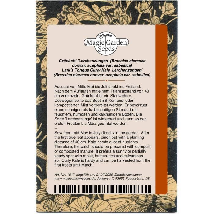 Sachet graines Chou Frisé ( KALE ) Westlandse Winter BIO - Brassica Semences Chou Frisé Non Pommé Graines Potagères CHOU NON POMME DARKIBOR F1 (Brassica Oleracea Graines à Semer Légume Feuille Semences non traitées, cultivées sans OGM, issues de variétés anciennes sélectionnées avec soin sabellica), aussi appelé chou frisé non pommé, est un légume ancien à la fois décoratif et nutritif. Feuilles vert foncé très frisées, riches en vitamines et parfaites pour les jus, soupes ou chips Sachet graines Chou Frisé ( KALE ) Westlandse Winter BIO - Brassica oleracea var. sabellica. Vilmorin. 5,60 €. TTC Semis facile de mars à juin, en pleine terre ou en pot Le Chou Kale (Brassica oleracea var. sabellica), aussi appelé chou frisé non pommé, est un légume ancien à la fois décoratif et nutritif. Reconnu pour ses feuilles vert foncé très frisées, il est considéré comme un superaliment riche en vitamines A, C et K, en minéraux et en antioxydants Convient au jardin comme au balcon, en culture bio ou décorative Reconnu pour ses feuilles vert foncé très frisées, il est considéré comme un superaliment riche en vitamines A, C et K, en minéraux et en antioxydants.