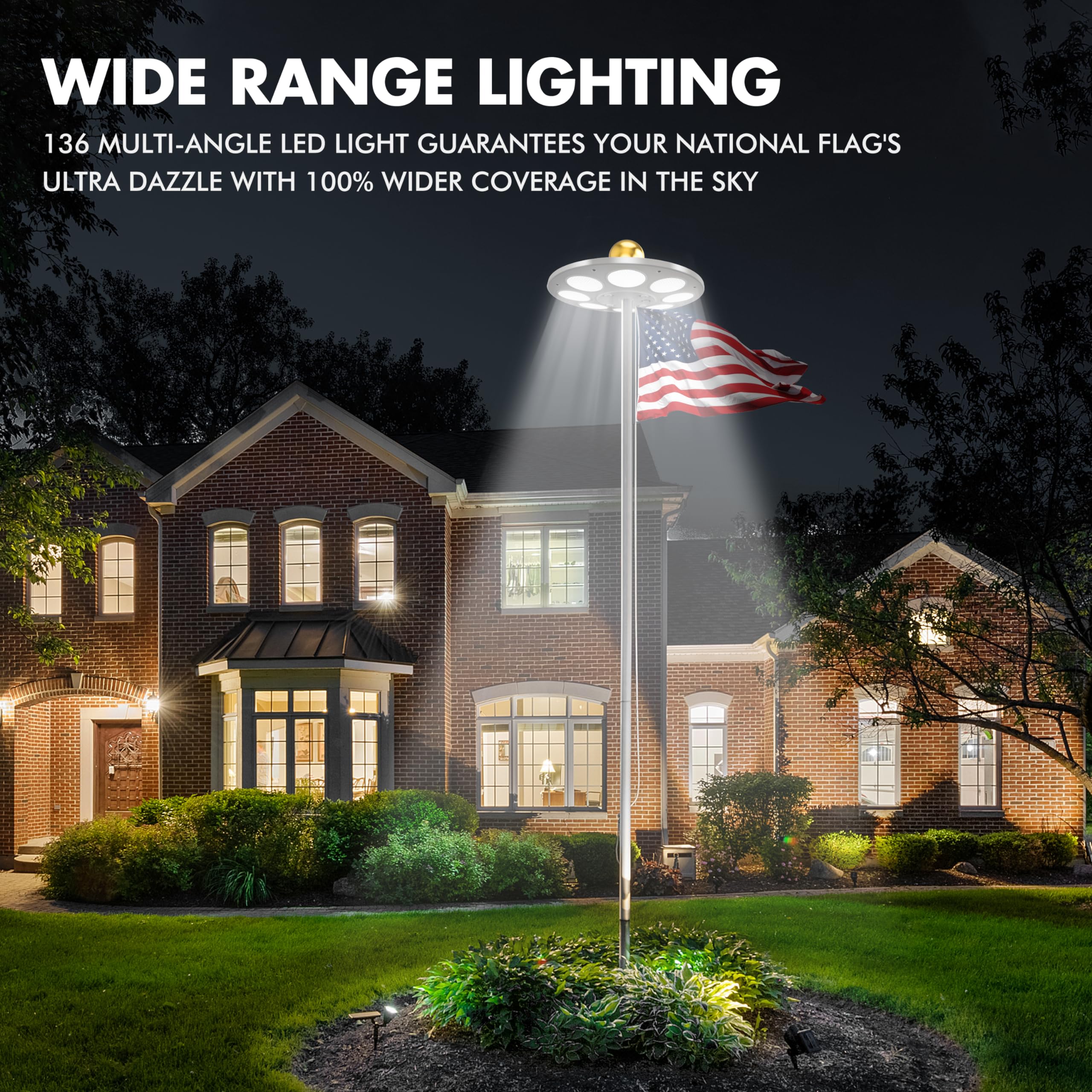Illuminez votre drapeau avec cette puissante lampe solaire pour mât, conçue pour briller toute la nuit sans câblage ni entretien. Sa puissance lumineuse élevée garantit que votre drapeau soit visible du crépuscule à l'aube Garantie 1 an et achat en toute confiance – 1) La qualité est garantie. Lampe Solaire Aurolit 48 LED Aurolit Auro 5 Pro Lampe Pour Mât De Drapeau à énergie Solaire, 136 LED Aurolit Auro 4 La lumière émise par les 48 grandes LED évoque la beauté fascinante des aurores boréales, grâce à notre technologie avancée de bande colorée. Dévoilez le mystère de l'Aurore : illuminez votre cour avec les lumières solaires Aurolit sur mât de drapeau, dotées d'une surface réfléchissante à double miroir revêtue d'argent. AUROLIT Design unique et sécurité : une marque américaine originaire de Floride, Aurolit, qui signifie Aurora Light, se consacre à apporter la beauté naturelle des aurores boréales aux paysages urbains. Les lampes solaires pour mâts de drapeau offrent une solution simple et efficace pour illuminer votre drapeau, notamment la nuit, lorsqu'il est essentiel qu'il soit visible. L'éclairage traditionnel des mâts de drapeau nécessite un câblage et une consommation d'énergie importante, tandis que les lampes solaires présentent plusieurs avantages indéniables Mât Tubulaire 4M pour Lampadaire Solaire | ZS Energie Solaire Convient pour les mâts standard de 4,6 à 7,6 m avec un diamètre de tige supérieur inférieur à 1,6 cm. Nos lumières ignifuges garantissent une cour sûre et un style de vie vert et relaxant Réglage initial des années 60 et éclairage éternel : avec un capteur avancé, la lumière mains libres Aurolit nécessite une simple configuration manuelle de bouton pour chacun de ses 2 modes d'éclairage.