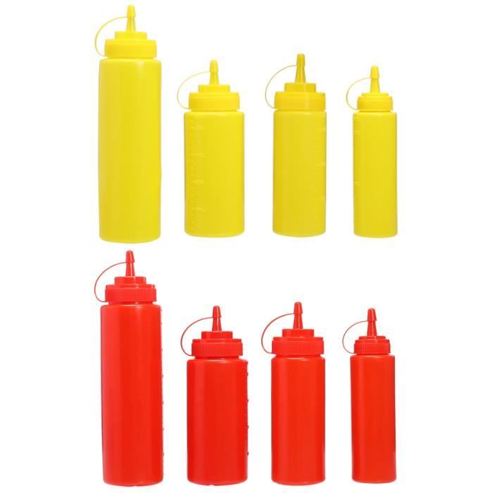 Viva Lot de 2 Bouteilles en Verre avec Bouchon 500 ML + Entonnoir Blanc Lot De 2 Bouteilles à Condiments Avec Bouchon En Plastique Transparent Pour Ketchup, Vinaigrette, Huile D'olive Moutarde 236,8 G Coupelle avec bouchon à visser RG-311717 Anti-fuite : toutes les bouteilles ont un joint à disque et un capuchon rouge pour plus de protection contre les fuites. Bouteilles souples en plastique d'une...