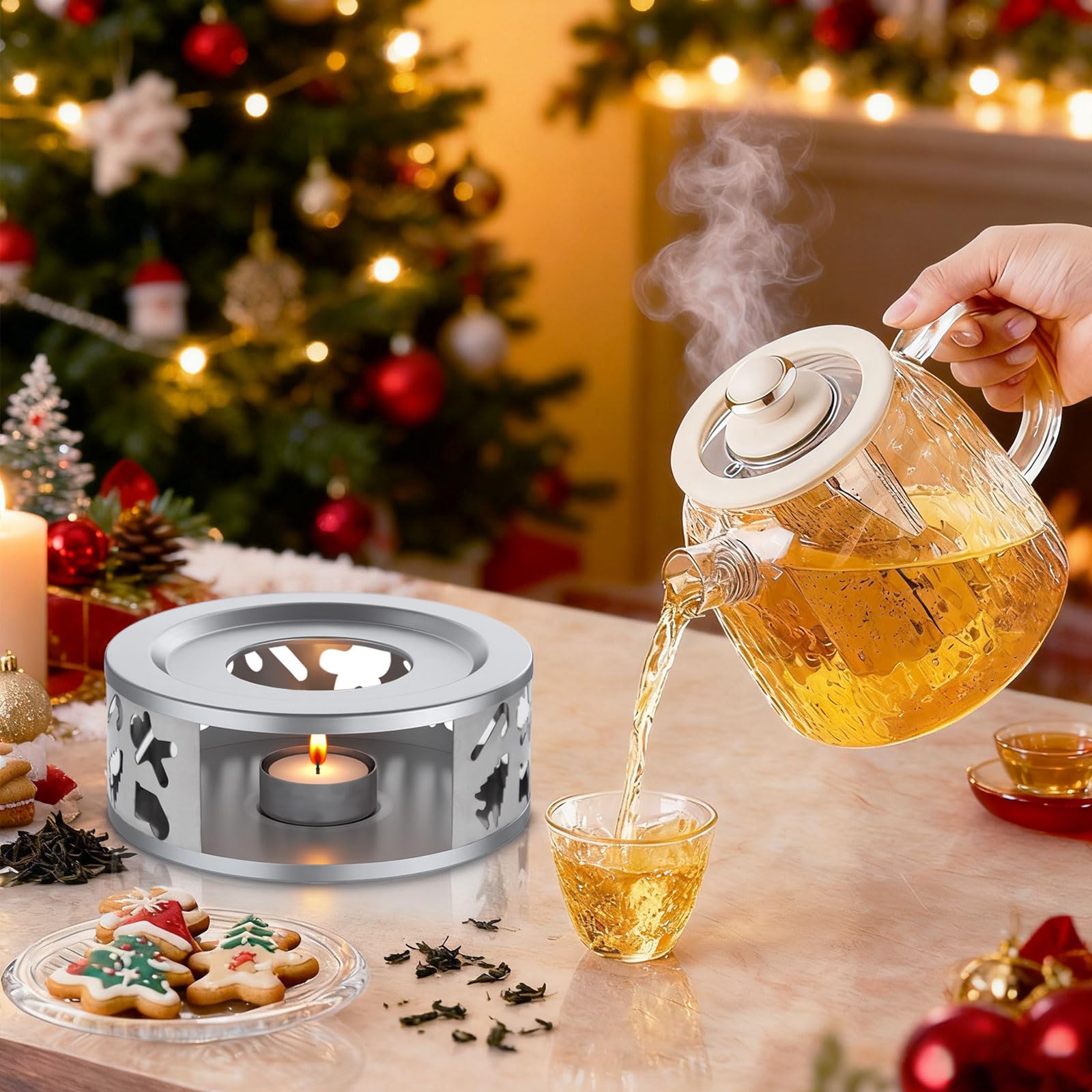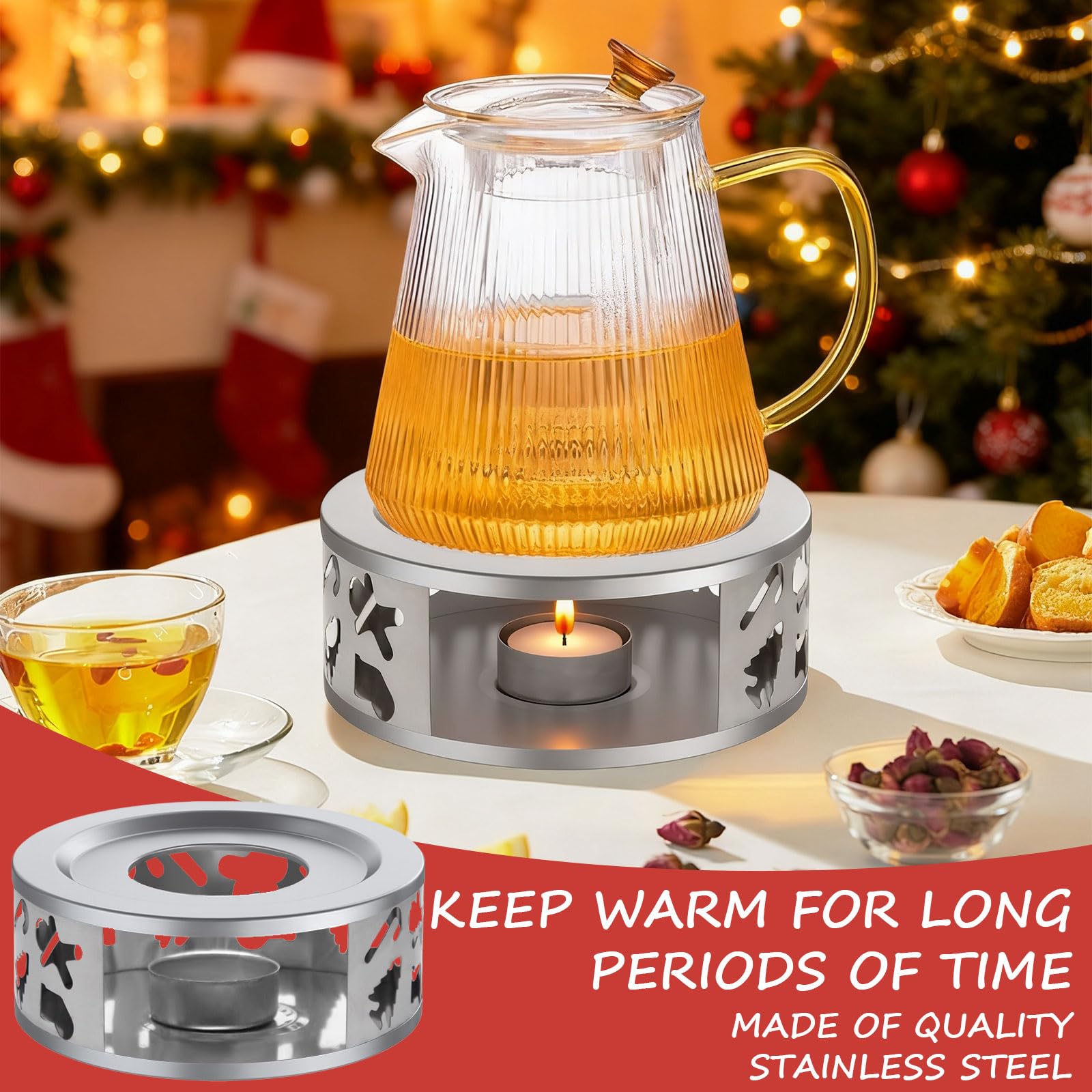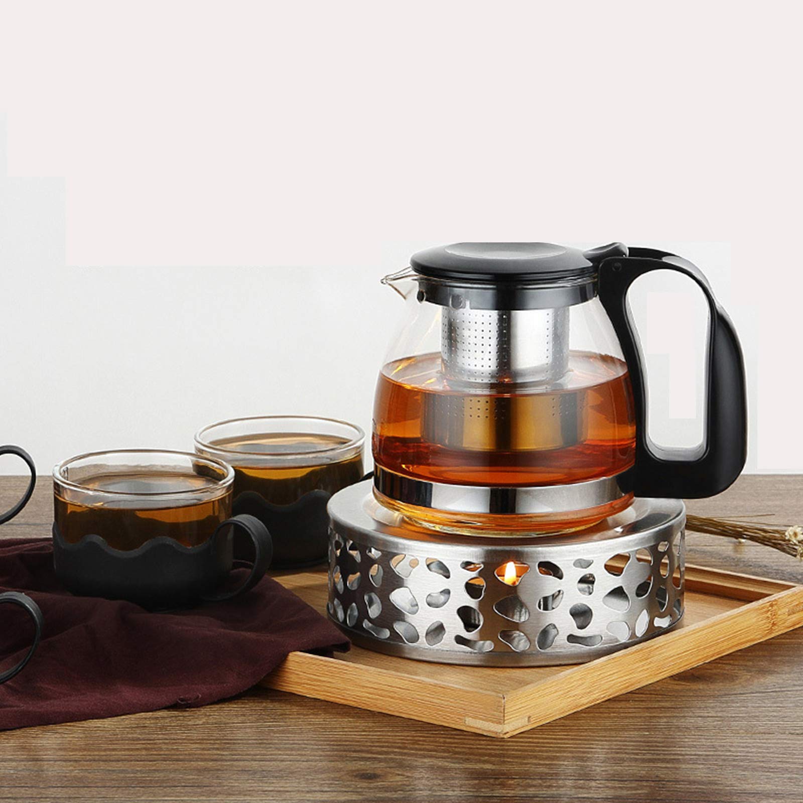 Sa haute qualité garantit une utilisation stable et durable, et sa surface est lisse. Chauffe-théière, chauffe-théière avec porte-bougie Chauffe-thé à café Chauffe-théière en Acier Inoxydable - Chauffe-théière en Acier Inoxydable avec Support pour Bougie Chauffe-Plat - Fonction chauffante - adapté pour Une Utilisation à la Maison et au Bureau Il maintient votre thé, vos aliments et votre café au chaud longtemps et est compatible avec les théières en acier inoxydable, en verre borosilicaté et autres matériaux. Ce chauffe-théière est un cadeau idéal pour tous les amateurs de thé. Le design ornemental rustique en gris apporte une touche d'élégance à votre table. Fonctionne avec une bougie chauffe-plat standard. Dimensions : 7,5 x 17 cm 【Facile à nettoyer】Le chauffe-thé avec photophore peut être essuyé délicatement avec un chiffon humide. 【Remplacement pratique】Le chauffe-théière mesure 150 mm x 55 mm et le bol en cire mesure 40 mm x 15 mm, ce qui facilite et accélère le remplacement de la bougie. Chauffe Plat Chauffe-théière Bougie Cosumy Chauffe-Théière Cosumy - Bougie Garde-Chaud Pour Thé, Café, Vin Chaud - Inox Bougie Chauffe-plat Accessoire Décoration Table