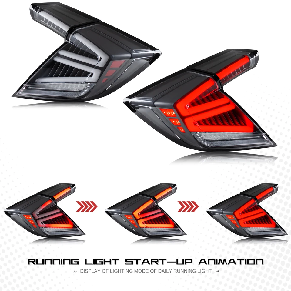 Compatibilité : Pour 10th Gen Honda Civic Hatchback / Type R FK7 FK8 2017 2018 2019 2020 Spécification: Cluster lumineux 3D avec effet 3D ; Plug and play, pas de code d'erreur ; Allumez la lumière avec séquentiel ; Feux de recul et antibrouillard personnalisés ; Fonctions : Clignotant ambre avec séquentiel, DRL avec 3D, feu stop, antibrouillard et feu de recul IP67 étanche et antichoc et conception brevetée DÉTAILS LED durables vous apportent des caractéristiques et une apparence parfaitement améliorées. feux arrière à LED VLAND pour 10 ème Gen Honda Civic HatchbackType R 2017-2020, avec Signaux Tourneurs Séquentiels et Éclairage Activateur Dynamique, avec Fonction Brouillard, côtés gauche et droit Référence fabricant : YAB SY 0377A 20 Fonctionnalité: Phare antibrouillard : phare antibrouillard à DEL Feu stop : LED (rouge) Feu de recul: Feu de recul à LED Clignotants : indicateur séquentiel à LED jaune Recommand 🚗 【Inclus】 1 jeu de feux arrière (côtés conducteur et passager); faisceau de câbles pour le clignotant de la partie intérieure et extérieure Feux arrière VLAND Full LED pour Suzuki Swift Sport 2017-2019 avec 🚗【Fonction】 Feu stop : LED (rouge) ; Feu de circulation : LED (rouge avec indicateur dynamique ; style 3D) ; Clignotant : jaune (avec indicateur séquentiel) ; Feu de recul : LED (blanc) ; Feu de brouillard : LED (rouge) ; (Remarque : Feux arrière à LED, aucune ampoule nécessaire) 🚗 【Qualité】 Puce LED super brillante ; Boîtier ABS noir durable et lentille PMMA transparente; étanche IP67, sans entretien, garantie 1 an, Le produit a EMARK Feux Arrière LED 10th Gen Civic Headlights VLAND LED Tail Lights For 10th Gen Honda Civic Hatchback/Type R 2017-2020 Rear Light,with 2016 Honda Civic Fog Lights Feux Arrière Dynamique FK7 FK8 Qu'y a-t-il dans la boite: Livré avec un ensemble complet de feux arrière, côtés conducteur et passager (2 pièces) Description du produit VLAND Feux arrière pour 10th Gen Honda Civic Hatchback / Type R,avec clignotants séquentiels et éclairage d'activation dynamique AVANT ET APRÈS Les lentilles assurent un éclairage complet et une sécurité maximale.