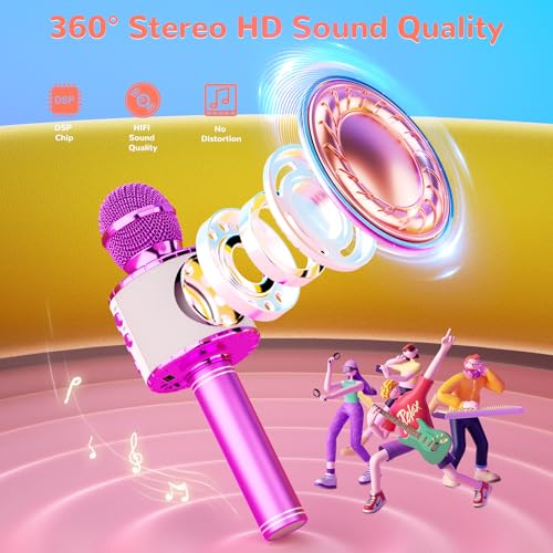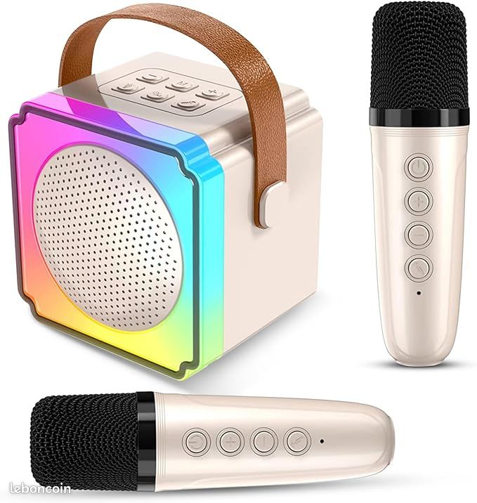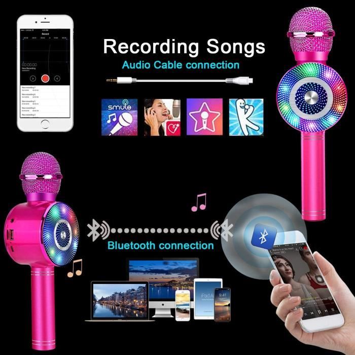 Le karaoké fille offre une expérience de chant de premier ordre aux jeunes amateurs de musique qui aiment le chant clair. Le karaoké enfant prend également en charge les cartes TF, les câbles de données USB et les interfaces AUX. Ils disposent de fonctionnalités supplémentaires : connexion bluetooth sans fil, micro sur pied, écran rétro actif, effets sonores et lumineux, haut-parleur intégré, enregistrement … Choisissez celui qui correspond à votre enfant ! C’est un jouet idéal pour jouer entre amis et faire la star Compact et puissant, lumière LED dynamique, 5 effets sonores, jusqu'à 8 heures d'autonomie, ce mini karaoké produit une voix claire et est également doté d'écho Le haut-parleur Bluetooth portable garantit une excellente réception à distance du signal tout en offrant la possibilité de chanter et de s'amuser même à distance de l'appareil Autonomie Longue et Conception Portable : Le micromicro enfant a une batterie rechargeable (Haut-parleur : 1200 mAh, Micro : 500 mAh). Jouet Musical Bluetooth Micro Karaoké Enfant Sans Fil - 2 Micros Bluetooth Avec LED Et Effets Voix - Rose Bluetooth Effets Lumière Que ce soit pour une fête d'anniversaire, un pique-nique en plein air ou une réunion en intérieur, les enfants peuvent profiter de heures de chant non stop. Cadeau Parfait pour les Enfants : Les kids' karaoke machines dans une belle boîte cadeau sont le cadeau idéal pour les jeunes chanteurs de 3,4,5,6,7,8,9,10,11,12 ans, particulièrement adapté aux anniversaires et à Noël. Micro Karaoke Enfants Bluetooth sans Fil avec 2 Micro, avec Magique Voix Change et LED Lumière Qualité Sonore HiFi Mini Microphone,Cadeau Anniversaire pour Enfants De 3 à 18 Ans (Beige) - Jeux & Jouets Une haute sensibilité et une excellente qualité sonore offrent des effets audio cristallins, créant un champ sonore surround Hi-Fi immersif. En raison de la mesure manuelle, les dimensions peuvent avoir une légère erreur. Grâce à la fonction de connexion Bluetooth, les enfants peuvent facilement se connecter aux smartphones, tablettes ou ordinateurs, une distance sans obstacle de 8 à 10 mètres permet de profiter des chansons préférées partout.