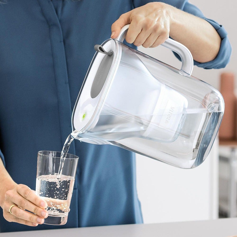 Goût pur, sans impuretés : filtre les arômes gênants, les particules les plus fines (≥ 30 µm), les micro-contaminants tels que les PFAS (SPFOS/PFOA, testés selon NSF/ANSI 53), les métaux, certains herbicides, pesticides, médicaments/s'ils sont présents dans l'eau Filtre À Eau Aquamax Sport Cartouche Filtrante - Compatible Avec Carafe BRITA Carafe filtrante Style Essential blanche (2,4L) avec 1x MAXTRA PRO PURE PERFORMANCE - Indicateur Smart Light, tient dans la porte du frigo, réduit* des impuretés, certains métaux & plus Plus efficace que jamais : jusqu'à 150 litres d'eau fraîche avec chaque cartouche de filtre à eau. ** Basé sur la comparaison du prix du litre avec le prix le plus bas disponible sur le marché pour les bouteilles d'eau de 1 litre. Goût tout simplement meilleur : l'eau du robinet filtrée BRITA Maxtra Pro Pure Performance est plus douce pour un goût pur à chaque gorgée. Retirez la LED intelligente BRITA avant de rincer. Contenu de la livraison : 1 carafe filtrante BRITA style essentiel, 1 cartouche filtrante BRITA Maxtra Pro Pure Performance Le BRITA Style Essential. Brita Carafe Filtrante Filtre À Eau Style Eco Vert (2,4 L) Avec 1 Cartouche Maxtra Pro Tout-En Carafe BRITA LED Smart Light - Goût pur, sans impuretés : filtre les arômes gênants, les particules les plus fines (≥ 30 µm), les micro-contaminants tels que les PFAS (comme le PFOS/PFOA, testé selon NSF/ANSI 53), les métaux, certains herbicides, pesticides, médicaments/si dans l'eau - Plus de protection des appareils et détartrant d'eau ? Essayez le filtre à eau pour l'eau potable pour tous les amateurs de café et de thé : filtre à eau BRITA Maxtra Pro extra anti-calcaire – Le filtre anti-calcaire extra efficace rend le bon café et le thé encore meilleurs – Bon pour vous, bon pour l'environnement : chaque filtre BRITA permet d'économiser des bouteilles en plastique, les cartouches de filtre à eau BRITA sont recyclables à 99 % dans le processus de recyclage BRITA – Nous sommes BRITA, un sous-groupe familial. Wessper Cartouches Filtre à eau pour Carafe, Filtre eau de Remplacement Brita Maxtra , Filtres... Et toutes les cartouches BRITA sont recyclables. Qualité et design allemands, produits de manière durable en Europe depuis 1966 ** La carafe filtrante pratique : élégante, s'adapte parfaitement à la porte du réfrigérateur, passe au lave-vaisselle. Avec plus de 500 Des années d'expérience et l'une des marques leaders mondiaux dans la filtration de l'eau – Qualité et design allemands, produit de manière durable en Europe – Participe depuis 1966 – car chaque bouteille en plastique compte. Nous sommes BRITA, une entreprise familiale avec plus de 50 ans d'expérience et l'une des marques leaders mondiaux dans le domaine de la filtration de l'eau. Le couvercle rabattable pratique de la théière assure un remplissage confortable d'une seule main – Toujours en vue : la LED intelligente BRITA rappelle le changement de filtre, le couvercle du filtre à eau de table protège l'eau filtrante de la saleté et de la poussière Entre autres, nous sommes convaincus que le passage à des matériaux plus durables dans nos produits, tels que Les plastiques biosourcés jouent un rôle essentiel dans la réduction de notre dépendance aux combustibles fossiles et contribuent à réduire les émissions de carbone. Économise de l'argent et est plus durable que les bouteilles d'eau en plastique.