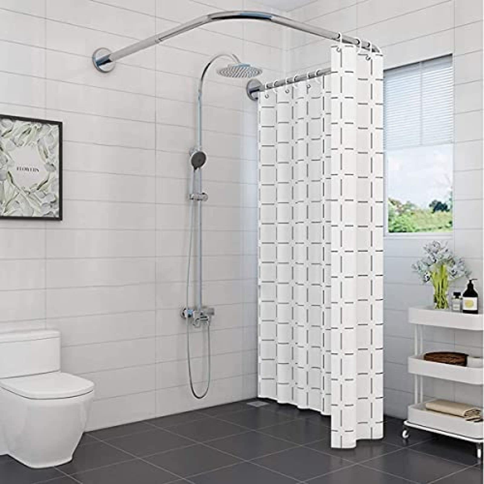【Forte capacité de charge】: Le poids maximum de la tringle à rideau de douche sans perçage peut atteindre environ 20 kg. Extensible : la tringle de rideau de douche baignoire en contact avec le mur peut être réglée de 0,9 à 1,3 m. Diamètre de la barre : 2,2 cm La partie en forme de U a également une capacité de charge de 1 à 2 kg. Facile à installer : le rideau de douche sans perçage est fabriqué en une seule pièce, vous n'avez pas besoin de l'assembler. Extensible : la barre en contact avec le mur peut être réglée de 0,9 à 1,3 m. Tringle Douche Sans Percage Barre Rideau Douche Tringle à Rideaux Extensible Sans Percage Arrondie En Forme De U Tringle Rideau Douche Angle En Acier Inoxydable Barre De Rideau De Douche Ajustable 80 To 130x110x80 To 130cm Tringle Douche Facile à Installer Vous n'avez donc pas à vous soucier que le rail de rideau de douche ne puisse pas supporter le poids du rideau de douche. Et le support de rideau de douche n'est pas nécessaire, il suffit de confirmer où vous devez l'installer. N'oubliez pas de vous assurer que le mur est sec. 【Haute durabilité】: La tringle de rideau de douche est fabriquée en acier inoxydable et ne sera pas facilement corrodée par l'eau. Tringle Rideau Douche Angle Sans Peru00e7age, Extensible Barre De Rideau De Douche, Tringle U00e0 Rideau En Ainsi, ce kit peut être utilisé pendant une longue période. Erica Tringles de Rideau de Douche en U - 85x95x85 c, Barre de Rideau...