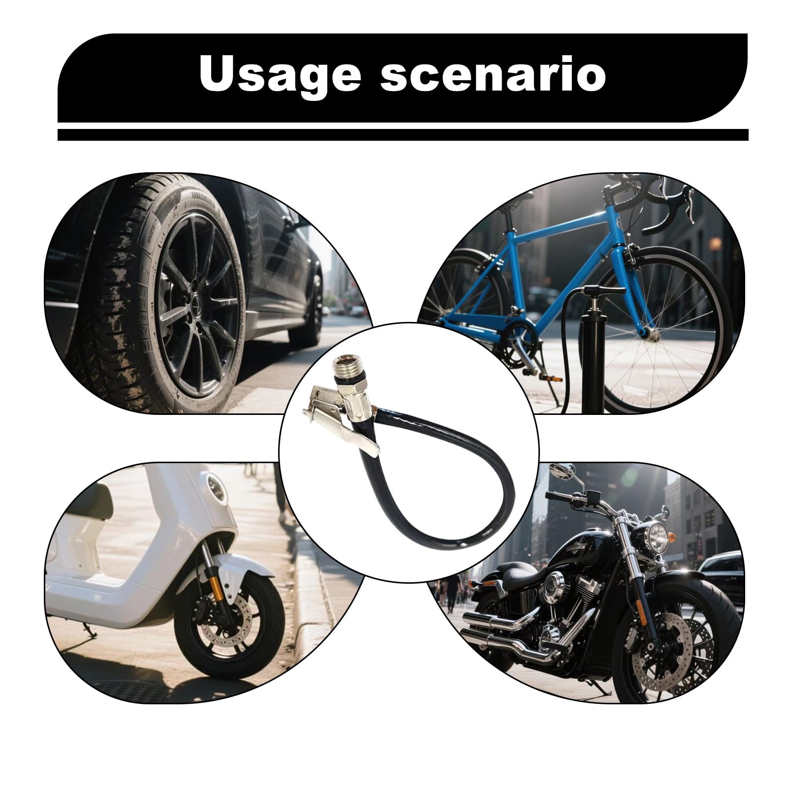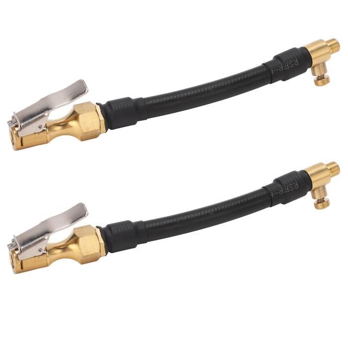 Structure robuste et pratique : Conçu en tuyau de gonflage des pneus combinant caoutchouc flexible et métal résistant à l’usure, cet embout de gonflage assure une connexion étanche et fiable, réduisant les fuites d’air pendant le gonflage et prolongeant la durée de vie de vos pneus. Installation facile]Le tuyau de gonflage de pneus est doté d'une douille, ce qui facilite l'installation et le retrait du tuyau de gonflage en appuyant doucement sur la petite poignée de pression en zinc Cet adaptateur de gonflage pneu avec tuyau de gonflage flexible est un accessoire pratique et fiable pour tous vos besoins d’entretien de pneus. Idéal pour multiples usages : Parfait pour un usage domestique, professionnel ou en voyage. Fixez le tuyau gonflage à la pompe à air ou au tuyau compresseur d'air et obtenez un gonflage rapide, même dans les espaces difficiles d’accès. Permet un accès facilité aux pneus arrière jumelés et aux zones étroites. Facilité d’utilisation : Installation simple sans outils spéciaux. [Fonction] Notre tuyau de gonflage de pneu avec 2 pièces de connecteur de levier de valve de voiture de 8 mm, mandrin à air pour gonfleurs de pneus de vélo, de moto et de voiture peut être utilisé pour connecter des gonfleurs de pneus et des compresseurs Grâce à sa compatibilité avec la plupart des valves standard, cet adaptateur peut être utilisé comme rallonge de valve pour vélo, moto, voiture, camion ou camping-car. EODKSE Adaptateur de Gonflage de Pneu avec Tuyau en Caoutchouc pour Les Valves Standard - Rallonge de Adaptateur Valve Vélo Moto Voiture Camion Holibanna Tuyau De Gonflage De Pneu Raccord De Valve Pour Vélo Et Moto Extension Pratique Pour Compresseur Utilisation Sur Voiture Camion Suv Embout Gonflage Ballon Compatibilité étendue : Ce tuyau gonflage pneus s’adapte à la plupart des valves standard, idéal comme gonfleur pneu d'extension pour vélo, moto, voiture, camping-car ou camion. Il est particulièrement utile pour atteindre les pneus arrière jumelés des camions ou les roues difficiles d’accès, là où une pompe classique ne suffit pas. Son utilisation est simple et rapide : il suffit de fixer l’adaptateur à la valve du pneu et de le relier à la pompe à air ou au compresseur. En l’utilisant régulièrement, vous contribuez à maintenir la pression optimale de vos pneus, réduisant ainsi l’usure prématurée et améliorant la sécurité de conduite. Que vous soyez cycliste, motard, automobiliste ou conducteur de poids lourds, cet adaptateur de gonflage avec tuyau flexible deviendra rapidement un outil indispensable dans votre équipement.