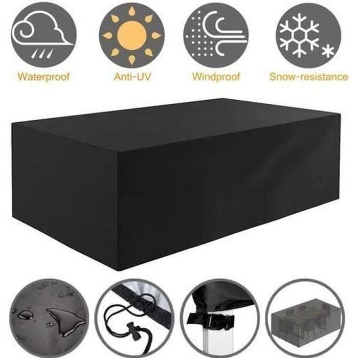 Veuillez mesurer vos meubles de terrasse avant de commander pour vous assurer que la housse est adaptée Protégez vos meubles de patio toute l'année] - Fabriquée en tissu Oxford très résistant (120 gr / qm), cette bâche extérieure table est imperméable, résistante aux UV, aux déchirures et à la décoloration 【Spécification】Type: Housse de Table de JardinMatériau: polyester Oxford 600D haute densité + placage d'argentCouleur: Noir/ArgentéTaille: Facultatif (Longueur*Largeur*Hauteur)Gardez vos meubles sans dégâts! 【Protection contre tous les temps】Notre housse de canapé de jardin offre une protection toute l'année, elle protège vos meubles de la pluie, des tempêtes de neige, de la poussière, des feuilles et des rayures. Conseils: mettre quelque chose au milieu de la table pour relever le couvercle pour lui donner de la hauteur si la pluie ruisselle. Vos meubles de terrasse resteront propres et sûrs en toute saison Un nettoyage régulier de l'eau et de la poussière accumulées prolongerait la durée de vie de la housse du meuble. Housse De Protection pour Salon De Jardin Bâche De Protection Étanche De plus, ces cordons et boucles facilitent l'installation et garantissent une bonne fixation à la table Lorsque le vent est très fort, nous vous suggérons de mettre des objets lourds sur la nappe pour mieux éviter que la nappe ne s'envole. 【Conception Coupe-Vent】Sa conception avec des cordons et des boucles assure une bonne tenue même par vent fort, évitant que la housse ne bouge et protégeant constamment les meubles. Assez grandes pour couvrir tous les types de meubles de jardin, tables, bancs, chaises, tables basses ou autres meubles rectangulaires / carrés en plein air Housse Protection Table Jardin Housse Pour Mobilier De Jardin, Bâche De Protection Pour Table Et Housse Table Jardin La couche intérieure a un revêtement PU argenté, qui bloque efficacement les rayons ultraviolets et réfléchit la chaleur