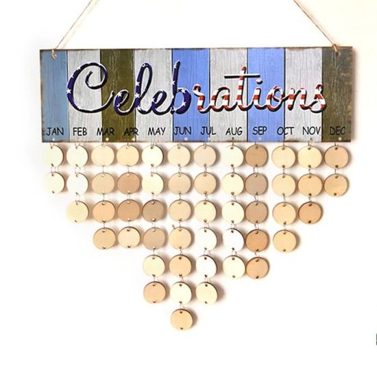 Description Un moyen simple et pratique d'enregistrer les anniversaires, les anniversaires de mariage et bien plus de votre famille ou de vos . Calendrier familial bricolage : Ce calendrier d’anniversaire amusant est emballé avec 100 étiquettes en bois sur lesquelles vous pouvez écrire des noms/dates importants Caractéristiques - CouleurKaki - Matériau : Bois - Taille : 39,00X11,00X0,50cm/15,33X4,32X0,20 pouces. Forfait comprenant 1 x ensemble de calendrier suspendu UNE PLAQUE EN BOIS POUR VOUS RAPPELER L'ANNIVERSAIRE DE LA FAMILLE, LA FÊTE DES MÈRES, LA FÊTE DES PÈRES, UN ANNIVERSAIRE, LA SAINT-Valentin, etc. Panneau Familial DIY Rappel Calendrier Des Anniversaires Famille Et Ou Amis En Bois Personnalisé Calendrier Familial - Vous pouvez exprimer votre amour en vous souvenant de leurs anniversaires avec ce calendrier suspendu en bois. UN IDÉAL POUR LES ENFANTS, LES OU LA FAMILLE LORS DE JOURNÉES SPÉCIALES, COMME UN ANNIVERSAIRE, UN MARIAGE, LA SAINT-Valentin, la fête des mères, etc. Les tranches de bois sont brutes et vierges, vous permettent d'écrire ou de peindre, puis elles peuvent être accrochées - Une plaque en bois pour vous rappeler l'anniversaire de la famille, la fête des mères, la fête des pères, un anniversaire, la Saint-Valentin, etc. CALENDRIER BOIS MURAL Rappel D'anniversaire De Famille Tableau Suspendu EUR 18,58 - PicClick FR - Les tranches de bois sont brutes et vierges, vous permettent d'écrire ou de peindre, puis elles peuvent être accrochées. Une plaque en bois pour vous rappeler l'anniversaire de la famille, la fête des mères, la fête des pères, un anniversaire, la Saint-Valentin, etc. - Les tranches de bois sont brutes et vierges, vous permettent d'écrire ou de peindre, puis elles peuvent être accrochées