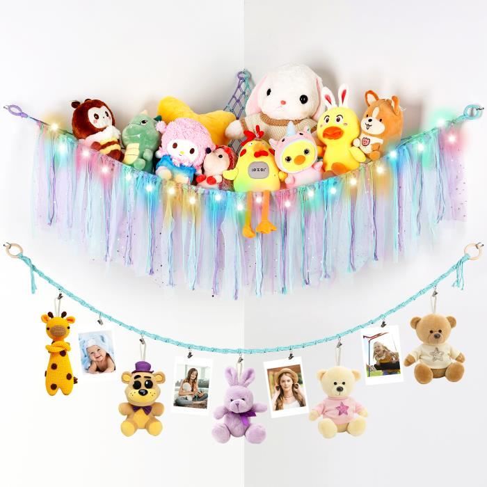 ANROYE Grand espace de rangement d'angle pour animaux en peluche Rangement Peluche Rangement Pour Animaux En Peluche, Support Pour Animaux En Peluche En Pvc Pour Ranger Les Animaux En Peluche Les Speelgoed Hamac Peluche Amdermi Organiseur de rangement en peluche Aanimal - Hamac d'angle à suspendre - Hamac Aniaml en macramé - Support mural pour jouets en peluche - Décoration de chambre d'enfant - Organisateur de salle Hamacs pour petits animaux, hamacs pour furets, hamacs et tunnels...
