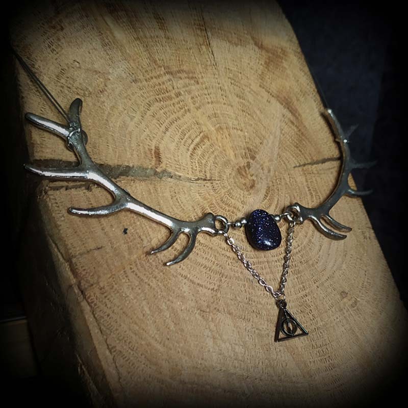 Collier rotatif : le collier emblématique des Reliques de la Mort tourne maintenant Le centre du pendentif tourne, ce qui rend ce collier encore plus magique HARRY POTTER Cadeau – Collier tournant Les Reliques de la Mort présenté dans un coffret cadeau Ce collier dans un coffret cadeau est parfait pour tous les fans de Harry Potter Emporte-pièce métal Biscuits et Gâteaux Reliques de la Mort - Harry Produit officiel : produit sous licence officielle Harry Potter et approuvé par Warner Bros. Carte Postale "Collier des Reliques de la Mort". - Boutique Harry Potter Zinc Argenté Sans Gemme Collier Des Reliques De La Mort, Bijou Officiel Harry Potter Deguisement Harry Potter Enfant Devenez le Maître de la Mort avec ce collier Reliques de la Mort avec coffret cadeau ! Ce bijou extraordinaire reproduit le symbole légendaire des trois objets magiques les plus puissants jamais créés : la Baguette de Sureau, la Pierre de Résurrection et la Cape d’Invisibilité