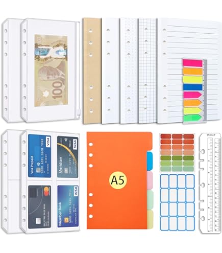 Leobro Lot de 2 feuilles de papier ligné A5, avec 2 pochettes de classeur et 160 marque-pages avec règle, 6 anneaux de recharge A5 pour classeur, carnet, journal en cuir, 5,6 x 8,2 cm Papier de reliure A5 de qualité : papier de qualité supérieure, épais, sans impuretés, lisse, résistant à l'usure, ne traverse pas, idéal pour écrire, lister, dessiner, planifier, etc. Chris.W Lot de 3 recharges A5 lignées en papier, 2 marqueurs de page fluo, 10 intercalaires, 3 pochettes pour classeur, 1 règle d'aujourd'hui, inserts à 6 trous, accessoires pour agenda A5 rechargeable à 6 anneaux Veuillez vérifier les dimensions. Onglets colorés avec règle : 1 lot de 160 autocollants fluorescents colorés, en forme de rectangulaire/flèche, 5 couleurs au choix, idéal pour marquer et mettre en évidence le contenu important. Avec une règle de 12 cm, pour mesurer et faire des graphiques. Recharge FILOFAX Personal 17,1x9,5cm - 20 Feuilles de notes lignées - Jaune Classeurs à feuilles mobiles pour le matériel de, fournitures philatélie feuille Attention : veuillez vérifier l'image de mesure avant d'acheter., ! pour l'école, le bureau, les voyages, un usage quotidien. environ 20,9 x 14,2 cm, 24 lignes, 8 mm de large, la distance entre les trous est indiquée sur l'image.