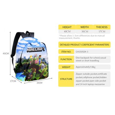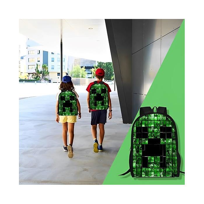 Aussi idéal pour aller au zoo, jouer au parc, voyager et toutes autres activités de plein air. 【Large Utilisation】Convient pour les étudiants, les adultes et les filles et peut être utilisé comme sac à dos, sac de voyage, sac à dos quotidien et sac à dos décontracté. Votre jeune explorateur du monde de blocs sera prêt pour toutes ses journées avec ce sac à dos Minecraft noir et vert de 43cm ! Arborant des motifs pixelisés emblématiques et le logo Minecraft, ce sac à dos enfant combine praticité et l'univers créatif de votre jeu vidéo préféré Description. Caractéristiques: 1.Ce sac à dos est fait de tissu de haute qualité, résistant aux chocs pour une meilleure résistance à la déchirure et à l'eau. 2... 【Excellente idée cadeau】Rendez les occasions spéciales encore plus mémorables en offrant à votre enfant ce captivant sac à dos sur le thème des dessins animés. AUTREMENT Minnecrraft Sacs à Dos Minnecrraft Sacs à Deux Ce sac à dos pour enfants convient très bien comme cadeau pour les enfants, les camarades de classe, les amis, etc. Les saisons de rentrée scolaire, le sac à dos surprendra et ravira votre enfant. Sac école Motif Mignon Minnecrraft Sacs à Dos, Sacs à Deux Épaules Sacs Scolaires 3D Sac à Dos Léger Enfant Sac un bon choix pour les cours scolaires, le camping, la randonnée et les pique - niques. ce sac à dos garantit des performances durables tout en offrant un entretien facile, expérience facile pour vos enfants. 【Mode et Mignon】Nos sacs à dos pour tout-petits sont conçus pour donner aux enfants un sentiment de stimulation sensorielle qui correspond aux préférences des enfants, et votre enfant adorera l'emmener partout et le faire ressortir de la foule.