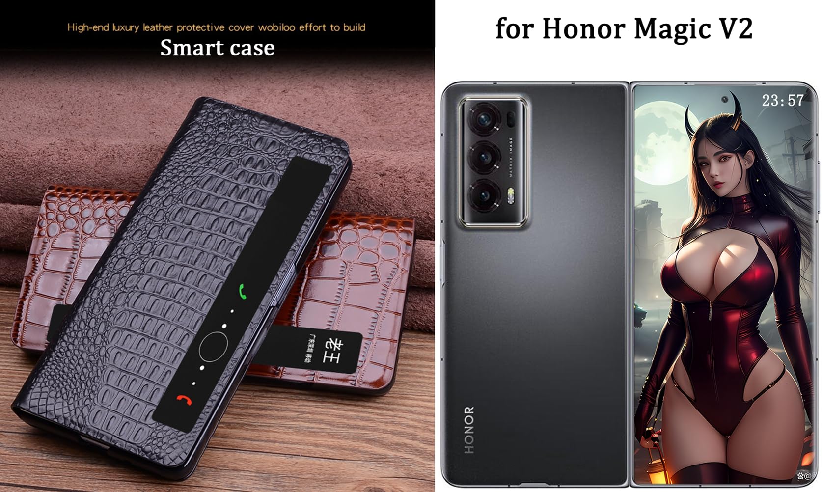 Cet étui en cuir de style professionnel, élégant et à la mode, convient aux hommes et aux femmes de différentes professions et de différents âges à différentes occasions. Pour Huawei Honor Magic V5 étui en cuir PU charnière magnétique sans fil charge protéger coque arrière pour Magic V3 V5 coque de téléphone L'apparence, la qualité et la fonction vous font aimer. Protection automatique à charnière élastique, facile à utiliser et offrant une protection à 360° à votre téléphone. Beau, élégant, durable et résistant à l'usure étui Honor Magic V5 Étui En Cuir PU Pour Honor X7 Avec Motif Litchi, Fonction Stent Et Couverture Magnétique, Noir Housse Protection Verre Trempé 9H Les matériaux, les processus et les conceptions sont bons pour la santé et la protection de l'environnement. Super protection sans peur de tomber. Film de protection d'écran en verre trempé 9H intégré et couvercle de protection de caméra , Placage sous vide. * Fait à la main, cuir fin. Avizar Coque pour Honor Magic V5 Rigide Effet Cuir Grainé avec Bords Fabriqué en cuir PU en microfibre de haute qualité + PC. POUR HONOR MAGIC 4 Lite 5G Étui Slim Silicone Souple Gel Housse - Noir...