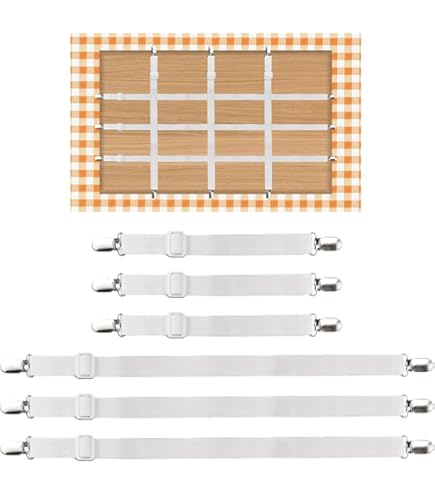 La plage de réglage est de 40 à 130 cm et de 80 à 220 cm, et peut être ajustée librement selon les besoins. Maison - Découvrez notre offre 5 Pièces Cachés Pinces Nappe, Sous la Nappe Pince à Sangle Élastique Attache Nappe pour Sécuriser la Nappe les multicolore TROMBONE. Livraison gratuite à partir de 25€* | Paiement sécurisé | 4x possible | Retour simple et rapide FACILE À UTILISER : Les pinces à nappe ont des boucles réglables et des propriétés élastiques pour une installation facile. Peut également être utilisé pour les draps de lit, les couvertures, les coussins de canapé, etc. Large application : les pinces à nappe conviennent aux activités de plein air, aux pique-niques, au camping, aux mariages en plein air, etc. Clips Nappe Extérieure YSWOVUO 5 Pièces Élasticité Réglable Clips Pince Pour Nappe, Clips De Nappe à Sangle Cachée, Attache Nappe Pour Sécuriser Nappe Pique-Nique Tables Canapé Lit, Accroche Nappe Exterieur & Intérieur Accessoire Table Extérieure Fournit une solution conviviale pour fixer les nappes NAPPE SÉCURISÉE : Les pinces pour nappe d'extérieur garantissent que votre nappe est toujours bien en place. NAPPE SÉCURISÉE : Les pinces pour nappe d'extérieur garantissent que votre nappe est toujours bien en place. Assurez une expérience culinaire confortable Vous n'avez pas à vous soucier que la nappe glisse ou s'envole pendant votre fête en plein air. Namubarwa Pinces à Nappe à Sangle Cachée – Parfait Pour Les éliminant ainsi le problème de glissement ou d'irrégularité de la nappe. Contenu de l'emballage: vous recevrez 5 pince nappe exterieur, 3 courts et 2 longs, multifonctionnels, adaptés aux grandes tables intérieures et extérieures...