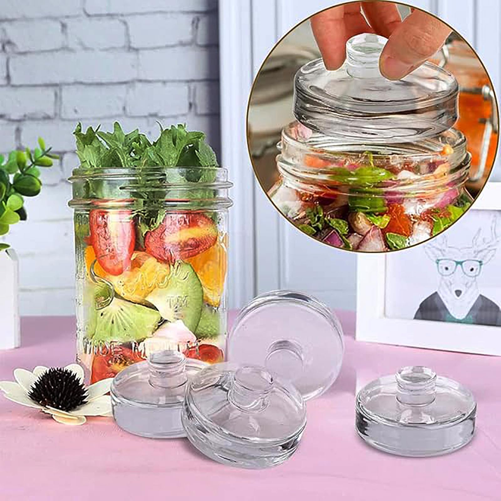 Chacun pèse 198,4 g et mesure 6,9 cm de diamètre, conçu pour s'adapter parfaitement aux bocaux Mason à large ouverture. Design innovant et facile à prendre en main : nos poids en verre de fermentation disposent d'une surface unique à prise en main, permettant une manipulation sans effort et un placement sûr dans n'importe quel bocal Mason à large ouverture pour garder vos légumes immergés pendant le processus de fermentation Couvercles de bocaux Mason à large ouverture : fabriqués avec un matériau en verre de qualité supérieure et une fabrication exquise, ce poids en verre est lisse au toucher et très transparent Poids de cuve de fermentation robustes dans un paquet de 4 avec Nettoyage rapide et facile : la finition en verre lisse permet un rinçage rapide et un nettoyage facile après utilisation, tandis que le design compact permet un rangement simple dans votre cuisine, vous assurant que vous êtes toujours prêt à commencer votre prochain projet de fermentation. Design innovant et facile à prendre en main : nos poids en verre de fermentation disposent d'une surface unique à prise en main, permettant une manipulation sans effort et un placement sûr dans n'importe quel bocal Mason à large ouverture pour garder vos légumes immergés pendant le processus de fermentation Poids En Verre 6.9cm 198g Kimchi FEADBYT Fermentation En Verre Pour La Fermentation, Poids En Verre Avec Large Ouverture, Lot De 4 Poids, Avec Poignée Facile à Saisir Poids Pour Bocaux Mason Large Ouverture Nous avons essayé de nombreux poids différents pour garder nos ferments végétaux sous la saumure, mais ces poids de verre sont tout ce que nous aimons tous roulé en un seul produit. Nous les aimons parce que