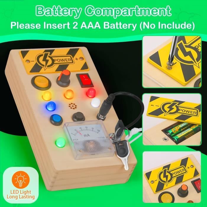 Tableau Sensoriel Bébé Tableau Sensoriel Montessori NIWWIN - LED Interrupteur Lumineux Montessori Jouet Interrupteur De Lumière LED, Tableau Sensoriel Lumineux En Busy Board Montessori Jouets alimentés par LED : alimenté par des lumières LED, ce jouet en bois émet des couleurs rouges et vertes vibrantes pour attirer l'attention des enfants et stimuler leurs sens visuels Ce tableau bien rempli est spécialement conçu pour les tout-petits qui adorent les interrupteurs et les lumières LED. Chaque interrupteur déclenche une couleur ou un style de LED unique. La luminosité LED est parfaitement adaptée aux bébés, ni trop lumineuse ni trop faible