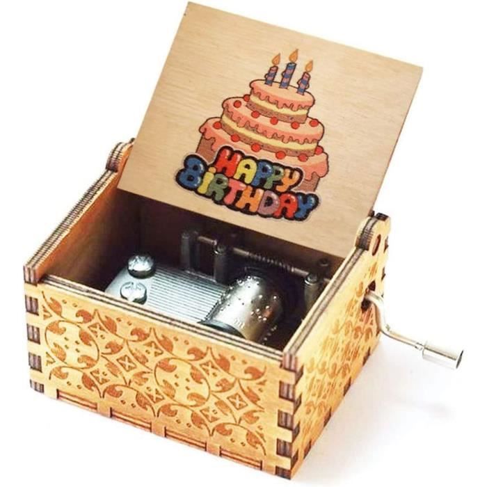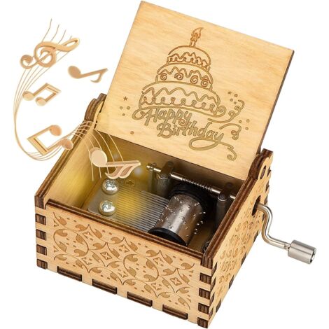 Boîte à musique en bois avec gravure de surface au dos, ce qui en fait un coffre magique ancien au trésor. L'intérieur est magnifiquement peint avec des motifs et du texte, ce qui donne une surprise et une bonne humeur - Les parties intérieures de la boîte à musique romantique en bois sont fabriquées en métal de haute qualité, la musique est très nette et sans bruit. Boîte à Musique Mécanique Sans Pile Boîte À Musique En Bois Joyeux Anniversaire - Blanc - Vvikizy Boîte à Musique Bois Boîte à musique à manivelle ? ? Aucune batterie conçue seulement pour continuer à tourner la poignée de la boîte à musique pour garantir une sortie musicale continue. Léger et portable ? - La taille de cette boîte à musique pour enfant est de 2,56 × 2,05 × 1,66 pouces, poids net : 0,14 lbres. Magnifiquement sculpté, ouvrez la boîte, vous pouvez voir comment fonctionne le mouvement, la boîte à musique en bois est également parfaite pour la décoration de votre maison. Assure la durabilité : fabriquée à partir de matériaux en bois de haute qualité et dotée d'un mouvement mécanique en métal, cette boîte à musique Happy Birthday... Boite à musique - Birthday picnic - WOODERFUL LIFE - Perlin Paon Paon Matériaux de qualité supérieure. La manivelle est facile à déplacer et même les enfants peuvent le faire facilement. La mélodie musicale est « Happy Birthday ».