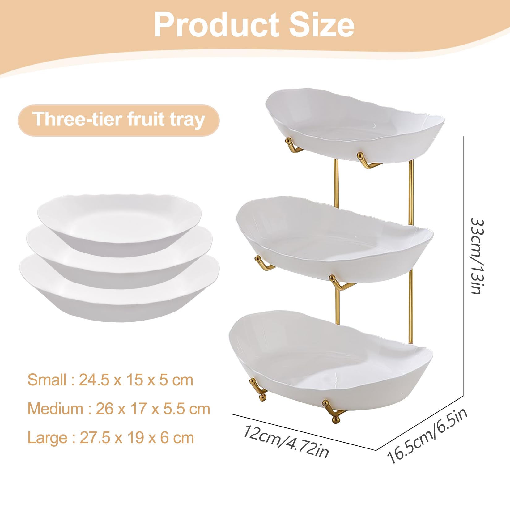 Support stable:étagère 3 étages de panier a fruit support en métal robuste pour la stabilité,grâce au design en creux, la panier fruit peut être posée en toute sécurité sur le support, ce qui l'empêche de glisser ou de se déplacer Trois Couches Corbeilles À Fruits Plateau De Fruits Plats De Service Présentoir Plateau, Biseau La corbeille à fruits 3 étages offre suffisamment d'espace de stockage pour ranger les fruits de différentes tailles et les conserver séparément. Vous pouvez également l'utiliser pour servir des snacks, des gâteaux et des pains lors de vos fêtes, car il est pratique et esthétique Conception à plusieurs niveaux:La conception de lacorbeille corbeille a fruit à trois niveaux offre un espace de rangement vertical qui convient parfaitement aux petites cuisines et permet de conserver différents types de fruits de manière ordonnée Vous pouvez également l'utiliser pour servir des snacks, des gâteaux et des pains lors de vos fêtes, car il est pratique et esthétique Conception à plusieurs niveaux:La conception de beille corbeille a fruit à trois niveaux offre un espace de rangement vertical qui convient parfaitement aux petites cuisines et permet de conserver différents types de fruits de manière ordonnéeDifférentes tailles:Plateau à fruits 3 plateaux de tailles différentes, 24.5 cm, 26 cm, 27.5 cm.Corbeilles à fruits Pour Idéal le rangement d... Différentes tailles:Plateau à fruits 3 plateaux de tailles différentes, 24., 5 cm, 26 cm, 27., 5 cm. Description du produit Type:Corbeille a fruit Matériau : Plastique + Métal Convient pour:Fruits, légumes, sucre, snacks et petits gadgets Couleur:Assiette blanche, support doré Coupe à fruits Taille : S (24., 5cm*15cm*5cm),M (26cm*17cm*5., 5cm),L (27., 5cm*19cm*6cm) Étagère 3 étages taille:16., 5cm*33cm*12cm Rangement Fruits Design Corbeille A Fruit 3 Etages JurciCat Corbeille A Fruit 3 étages Support En Métal Corbeilles à Fruits Avec Plateau En Plastique Blanc Stable Sans Vaciller Pour Conserver Les Fruits Et Légumes Desserts Support Métal Plateaux Plastique
