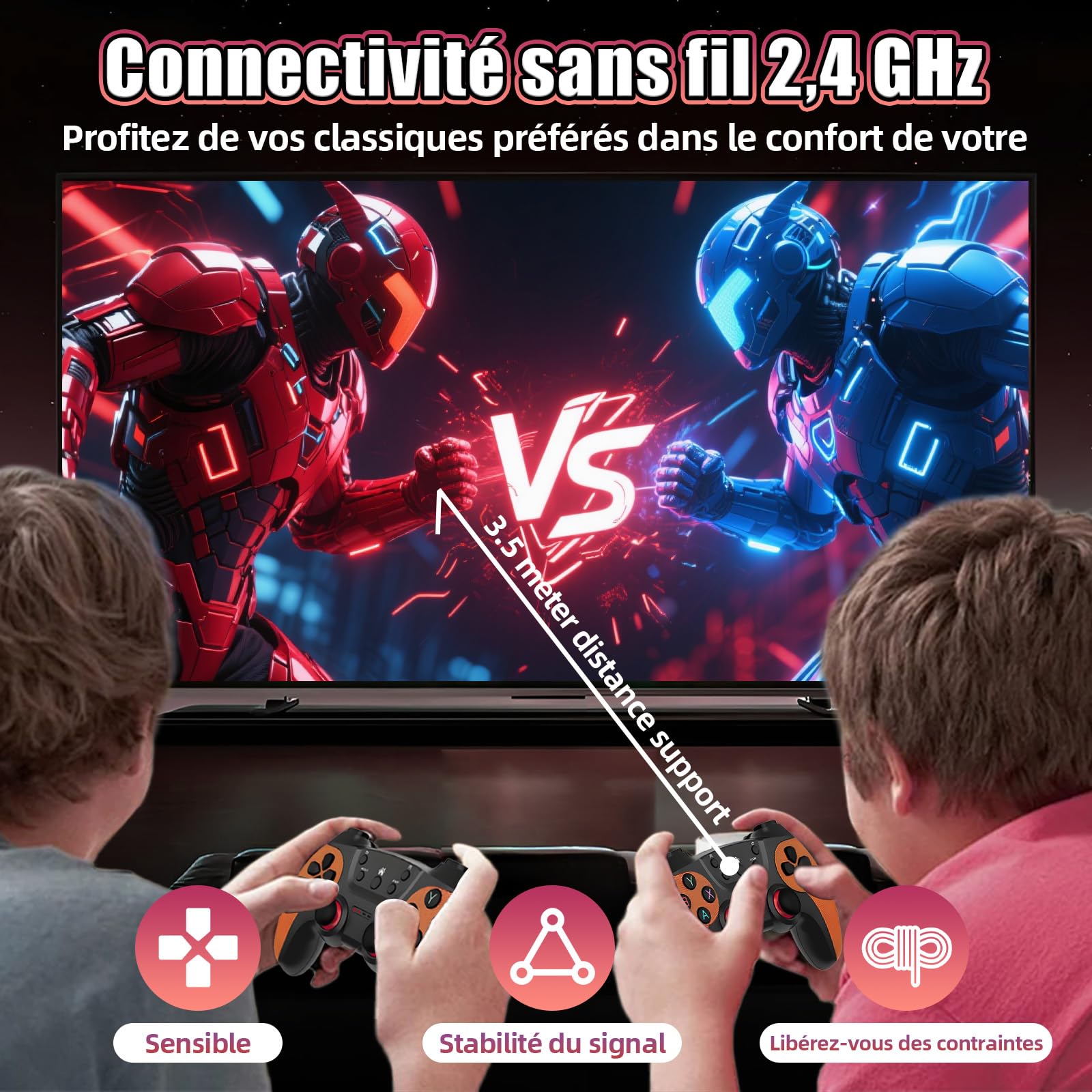 Règles d'utilisation : utilisez les boutons directionnels pour sélectionner les jeux dans le menu des jeux et appuyez sur le bouton START/A pour y accéder ; appuyez sur le bouton B dans la liste des jeux pour revenir à la page d'accueil ; appuyez simultanément sur les boutons SELECT+START pendant le jeu pour afficher le menu permettant de mettre en pause, d'enregistrer, de charger ou de quitter ; Remarques et entretien Limitation du système : cette console de jeux portable dispose de jeux intégrés et ne permet pas aux utilisateurs de modifier, mettre à jour ou actualiser le système eux-mêmes afin d'éviter tout dysfonctionnement de la manette de jeu causé par des opérations incorrectes ; Même avec plusieurs programmes chargés simultanément, elle évite les ralentissements causés par une mémoire insuffisante Que ce soit pour lancer des applications ou traiter des données, elle offre des performances fluides et stables, sans ralentissement. 20000+ Jeux & Gestion pratique des jeux & Extension de stockage ultra-large : Cette console rétro est préchargée avec plus de 20 000 jeux classiques, vous permettant de jouer instantanément sans téléchargement. 1. Console de jeu M9 : 1. Prise en charge de plus de 40 émulateurs : jeux rétro de grande envergure, entièrement compatible avec PSP/N64/NDS/DC/PS1 et autres jeux grand public, classiques, rétro, sports, combats, jeux de scène, etc. 2. Sortie HDMI haute définition : prise en charge de la sortie haute définition 4K, jusqu'à 60 ips, haute définition 2.1D, résolution 1280 x 720. Le... Liste Des Émulateurs GBA: Revivez Les Classiques Du Gaming De plus, avec 256 Mo de mémoire DDRIII, elle accélère considérablement les vitesses d'accès aux données pour des réponses plus rapides aux commandes du système. REMARQUE : les consoles de jeux avec jeux intégrés ne permettent pas aux utilisateurs de modifier ou de mettre à jour le système eux-mêmes, ni de rafraîchir le système., 1., Utilisez les boutons directionnels pour sélectionner le menu du jeu, puis appuyez sur le bouton START/A pour entrer dans le jeu., 2., Appuyez sur le bouton B dans la liste des jeux pour revenir à la page d'accueil., 3., Appuyez simultanément sur les boutons SELECT/START pendant le jeu pour afficher le menu du jeu, où les utilisateurs peuvent mettre en pause, enregistrer, charger ou quitter le jeu Sortie HD 4K & prise en charge de 23 langues : Cette manette rétro se connecte à un téléviseur, moniteur ou projecteur via un port HD, avec réglage flexible entre les résolutions 4K, 1080p et 720p pour des images nettes et détaillées. Processeur quadricœur haute efficacité & mémoire système haute vitesse : Cette console rétro est équipée d'un processeur quadricœur Cortex-A7 (vitesse d'horloge jusqu'à 1,2 GHz), capable de gérer sans effort les opérations multitâches. Jeux Classiques Nintendo Sega PlayStation M9 Console De Jeu Rétro Retro Game Stick,20000+ Jeux,15+ émulateurs,Sortie 4K HD 1080P,Console De Jeux Portable Avec Double Manette Sans Fil 2,4G, Console De Jeux Vidéo Pour TV (64G Console Android Vivez la nostalgie et l'excitation avec notre nouvelle console de jeu vidéo Retro M9. Disponible en deux versions spectaculaires : une avec 5,000 20,000 jeux et une autre avec 9 XNUMX jeux intégrés et XNUMX émulateurs, cette console est un hommage à l'âge d'or du jeu vidéo Elle prend également en charge la recherche de jeux, l'ajout aux favoris et la sauvegarde de progression, vous aidant à trouver rapidement vos préférés et à éviter les opérations répétitives. Facile à utiliser et adaptée aux scénarios multijoueurs, elle constitue un choix idéal pour les amateurs de jeux rétro, que ce soit comme outil de loisirs familial ou comme cadeau de Noël. De plus, elle supporte une extension de carte TF jusqu'à 128 Go, pour ajouter librement plus de jeux et fichiers et pallier les problèmes de stockage La console de jeux vidéo rétro M9 est un appareil de divertissement intégrant « plus de 20 000 jeux classiques, 15 émulateurs, une sortie 4K HD et deux manettes sans fil 2,4 GHz ». Manette de jeu M9 *1, Manuel d'utilisation *1, Câble USB *1, Récepteur USB *1, Carte TF * 1 Grâce à sa conception ergonomique, elle garantit un confort de jeu prolongé sans fatigue et permet un contrôle précis de chaque action du jeu