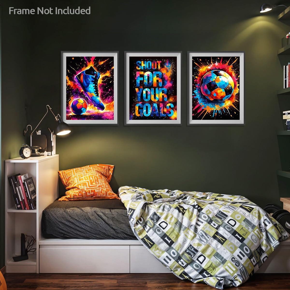 Un cadeau motivant pour les capitaines d'équipe ou les participants à des tournois. Revêtement mural Football Urbain Dynamique - Artgeist Posters Graffiti et street art 100 % écologique Configuration en ligne Nous vous aiderons à choisir un motif La palette à haut contraste simule une énergie explosive, se concentrant sur la dynamique sportive sans textures illustratives. Design Unique : Ballons et crampons jaillissent parmi des traînées de couleur intenses, accompagnés du slogan percutant TIRER VERS VOS OBJECTIFS en typographie angulaire. Ces impressions murales inspirantes de football mesurent 12x16 pouces / 30x40 cm, lot de 3, non encadrées, imprimées sur toile. Vous pouvez librement assortir n'importe quel cadre photo de votre choix et profiter pleinement du plaisir du DIY.Ces Occasions d'utilisation : Parfait pour les salles de sport, les vestiaires ou les bureaux d'entraîneurs. Vous pouvez librement assortir n'importe quel cadre photo de votre choix et profiter pleinement du plaisir du DIY. Decoration Chambre Ado Garcon Dazzlewall Ensemble De 3 Œuvres Murales Graffiti Sur Le Thème Du Football, Posters Sportifs Inspirants Pour La Décoration De Chambre D'Adolescent 30x40 Cm Sans Cadre Cadre Gaming