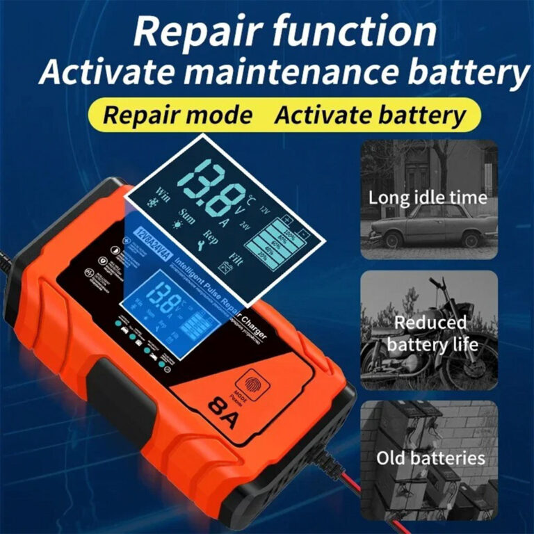Courant de sortie : DC-2A Liste de colisage: 1 * chargeur de batterie de voiture Note: En raison des différents paramètres d'éclairage et d'écran, la couleur de l'article peut être légèrement différente de celle de l'image. Caractéristiques: Nom du produit : chargeur d'impulsions. EN STOCK : Chargeur de batterie de voiture, chargeur d'impulsions en cuivre pur haute puissance 12 V, activateur de réparation de batterie pour voiture, bateau, moto, tondeuse à gazon, batterie au plomb ou batte, M5-260107-1920 pas cher. Livraison rapide partout en France Chargeur de batterie au plomb 12 V 24 V très résistant, mainteneur de batterie automatique intelligent 0-15 A, chargeur à régime lent avec réparation... En raison des différentes mesures manuelles, veuillez prévoir une différence de taille de 1 à 2 cm. Maintenance Batterie Plomb Acide Chargeur De Batterie Voiture 12V Technologie de pointe : grâce à une technologie d'impulsion avancée, notre chargeur de réparation de batterie rajeunit les batteries au plomb faibles et leur redonne de la vivacité. Protection avancée : protégez votre batterie contre les dommages causés par la surcharge grâce au contrôle automatique du chargeur de réparation de batterie, qui arrête la charge lorsqu'elle est pleine Chargeur De Batterie Intelligent Mainteneur De Batterie De Voiture 12 V Chargeur De Batterie De Voiture Intelligent Écran LCD Chargeur Multifonction Portable Protection De Circuit Prise UE 220 V Chargeur De Batterie 12v Taille du produit: environ 14x7x4 cm/5,51x2,76x1,57 pouces Poids du produit : 200g Longueur du câble d'entrée : environ 85 cm/33,46 pouces Longueur du câble de sortie : environ 55 cm/21,65 pouces Tension d'entrée : AC-110-230 V. Description du produit Chargeur de réparation de batterie, chargeur de batterie 12 volts automobile Ce chargeur étanche est sûr et efficace, prolongeant la durée de vie de la batterie et offrant des effets de charge plus efficaces.