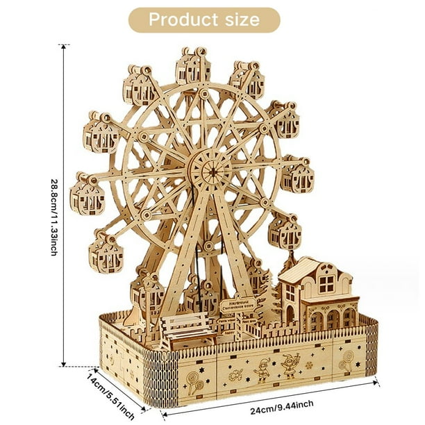 Description du produit Grande Roue Musique,Boîte à Musique Grande Roue Fonctionnalité de rotation faites pivoter la grande roue en toute transparence manuellement ou mécaniquement pour simuler parfaitement le fonctionnement d'une vraie grande roue. La Grande Roue musicale est un Puzzle 3D Mécanique en bois très réaliste et de qualité à assembler sans colle de la gamme Rolife. Dès 14 ans Fonction sonore doté d'un appareil musical intégré, qui produit des mélodies agréables lorsqu'il tourne doucement, augmentant le plaisir et améliorant l'ambiance sans effort Fonctionnalité transparente : avec la possibilité de faire tourner la grande roue manuellement ou mécaniquement, notre grande roue de boîte à musique offre un réalisme opérationnel qui améliore l'ambiance dans n'importe quelle pièce. Excellent matériau : construite avec des matériaux de haute qualité et une structure robuste, notre grande roue de boîte à musique est conçue pour résister à l'épreuve du temps et offrir plus d'enchantement. Jouet Scientifique Manuel Grande Roue Musicale,Jouet Musical Grande Roue, Artisanat De Grande Roue Musicale Bois Améliorer les compétences la construction de la grande roue de la boîte à musique aide les élèves à développer leurs compétences grâce à la pratique pratique et au raisonnement visuo-spatial, conduisant à une créativité accrue et à de meilleures capacités de résolution de problèmes. Simulez le mouvement captivant d'une véritable grande roue et profitez sans effort de son affichage fascinant. Délice auditif : la grande roue de la boîte à musique est équipée d'un appareil musical intégré, qui produit des mélodies agréables pendant qu'elle tourne, créant une atmosphère relaxante et amusante pour . Grande Roue Musicale,Jouet Musical Grande Roue Améliorez le plaisir de votre enfant et améliorez ses compétences avec notre boîte à musique grande roue en bois ! Promo La Roue Musicale Des Animaux Clementoni chez Kruidvat Caractéristiques: Nom du produit: grande roue de boîte à musique Taille du produit: environ 11x6,5x20 cm/4,33x2,56x7,87 pouces Matériel: Bois Liste de produits : 1 * ensemble de grande roue de boîte à musique Remarques : En raison des différents paramètres d'éclairage et d'écran, la couleur du produit peut être légèrement différente de celle de l'image. Grande Roue animée lumineuse et musicale - Rouge