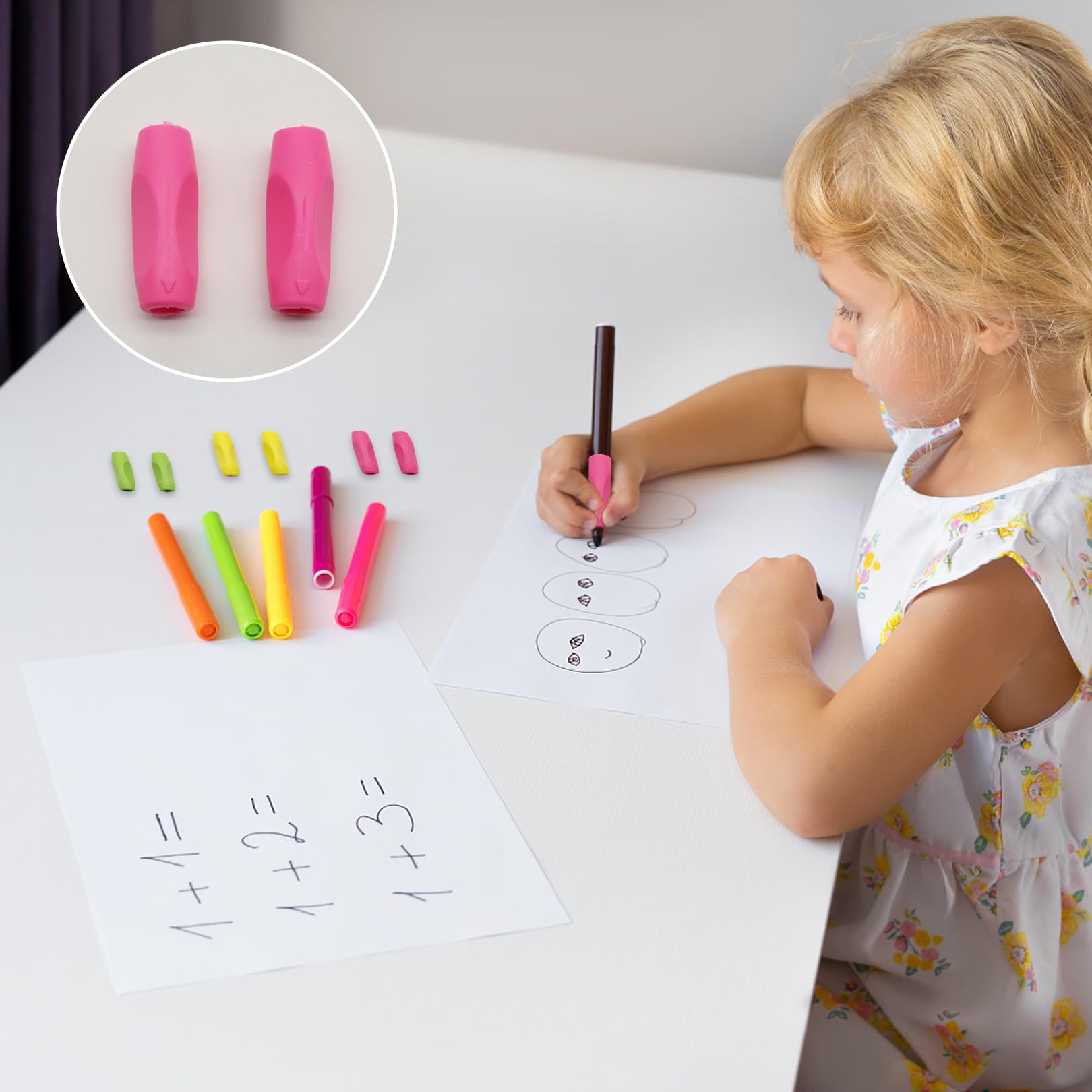 En raison des mesures manuelles, la taille du produit peut varier. Spécification : Matériau : silicone, Couleur : bleu ciel, Poids : 55 g Ces guides doigts en silicone sont conçus pour aider les enfants à améliorer leur posture d'écriture. Le matériau en caoutchouc souple et élastique offre une sensation de douceur au toucher et un design creux confortable et respirant. Convient aux enfants et adultes droitiers et gauchers Dsaren Guide Doigt Enfant, Grips pour Crayon Gaucher Silicone Pencil... Stable et antidérapant : Positionnement précis des cinq doigts, pratique fine, aide à l'écriture enfantine, aide au développement du cerveau, applicable à une variété de types de stylos tels que la tige triangulaire, la barre ronde et le stylo BSITSSS 8 Pièces Guide Doigts Ecriture Enfant, Guide Doigt Enfant Stylo Esthétiquement agréable : Les Poignées de crayon 6 pièces, avec leurs couleurs fraîches et leurs formes attrayantes, sont très appréciées des enfants et stimulent leur intérêt pour apprentissage ecriture Cadeau idéal : Aide ecriture guide doigt, non seulement corrige et améliore l'écriture, mais exerce également la coordination œil-main, joliment emballé, un cadeau de fête pour la famille, les amis et les enfants Guide Doigts Ecriture Enfant YYST 4 Pièces Guide Doigts Ecriture , Silicone,Pencil Grips écriture Cp Remarques: En raison de l'effet de lumière et de l'angle de prise de vue, il y a une différence de couleur dans le produit, veuillez comprendre. Le positionnement complet et confortable des cinq doigts, la pratique du bras et du poignet, l'apprentissage lent et naturel de la tenue d'un stylo, mais aussi l'amélioration de la motricité fine, la croissance et le développement du bébé ont un effet positif L'ensemble contient 6 étapes de prise de crayon, étape par étape pour aider à écrire correctement, facile à installer, mettre la pince à crayon sur le crayon, biros ou stylo plume que vous avez besoin d'utiliser peut être utilisé, aide pour tenir le stylo enfant, améliorer la posture et les compétences d'écriture, soigneusement conçu pour transporter le stylo pour écrire agilement et cultiver l'enfant à partir de la fondation 0