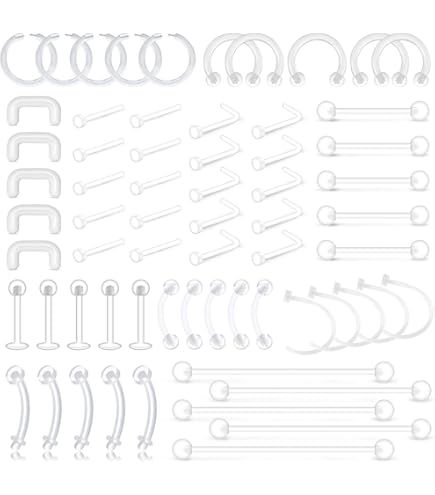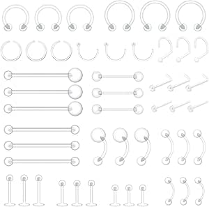 Piercing Bioflex Plastique Retainers Taille du paquet : 27 x 13., 5 x 2 cm, 0., 13 kg. Magasin en ligne pour des piercings de la catégorie Piercings au nombril en bioflex et bioplast. Grande sélection de piercings et envoi gratuit à partir de $35 Composants inclus :48 pièces de retenue de piercing claires Caractéristiques :Total de 48 pcs de retainers flexibles transparentes. Ces clous de nez invisibles sont très pratiques lorsque vous devez garder vos piercings discrets dans des situations spécifiques. 【Piercings】Convient aux piercings du nombril, langue, nez, septum, lèvres, lobes et cartilages de l'oreille. Piercing Transparent 14G 16G 20G BOULESENM 48Pcs Piercing Bioflex, Piercing Plastique IRM Anneau Septum Discret IRM Cet ensemble de retenue de piercing transparent comprend des cerceaux de boucle d'oreille, des anneaux à lèvres, des anneaux de septum, des anneaux de sourcil, un dispositif de retenue de piercing pour boucle d'oreille, etc. 【Piercing Plastique IRM】Que ce soit pour l'école, le travail, la chirurgie ou l'IRM, ces clous de nez invisibles vous couvrent. Ils peuvent être portés longtemps et faciles à insérer et à enlever sans aucune blessure. L'ensemble de retenue de piercing de styles mixtes vous offre plus de choix pour un port quotidien. Piercing langue Bioflex Boules Acrylique Ultra Glitter Domaines d'application : Que ce soit pour l'école, le travail, la chirurgie ou l'IRM, ces clous de nez invisibles vous couvrent. About this item [Bioflex Piercing]This set includes various transparent piercing accessories (ear, lip, septum rings, etc.) made of soft material for optimal comfort. The variety of styles offers multiple possibilities for everyday wear, ideal for discreetly concealing your piercings when needed. [MRI Plastic Piercing]Whether it's for school, work, surgery or MRI, these invisible nose...