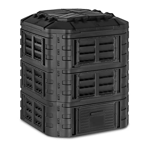 Idéal pour les maisons soucieuses de l'environnement et les pratiques de jardinage durables. Vous aspirez à réduire vos déchets tout en enrichissant naturellement votre jardin ? Le bac à compost de jardin de 300 L semble être la solution idéale pour vous. Conçu en matériau sans BPA, il promet un assemblage facile et une grande capacité, facilitant ainsi la création rapide d’un sol fertile Avec une capacité généreuse de 300 litres, ce bac à compostage robuste est parfait pour les petits et les grands ménages, ce qui le rend adapté pour les jardins domestiques, l'agriculture urbaine et le compostage de jardin. Avec des dimensions de 81 × 60 × 60 cm, ce convertisseur de compost compact s'adapte parfaitement aux jardins, balcons et terrasses tout en offrant une capacité de compostage généreuse. Ventilation efficace pour un compostage plus rapide : conçu avec plusieurs aérations sur tous les côtés, ce composteur domestique assure un flux d'oxygène optimal pour une décomposition aérobie plus rapide. Convertisseur de compost respectueux de l'environnement et sans BPA : fabriqué à partir de plastique alimentaire protégé contre les UV, sans BPA, ce bac à compost est conçu pour résister aux conditions extérieures difficiles. Durable, résistant aux intempéries et entièrement recyclable, il soutient un compostage sûr et durable à la maison. Conteneur maritime pour système de compostage industriel | Brome... Fabriqué à partir de plastique résistant aux UV, sans BPA, ce récipient de compostage est conçu pour résister aux conditions météorologiques indiennes difficiles. HURRISE bac à compost de jardin Bac de compostage 300L Conteneur de Bac Compostage Capacité 300 Litres Bac à Compost D'intérieur Conteneur De Compostage Pour Déchets De Bac à Déchets Organiques Cuisine Jardin Le bac à compost à chargement par le haut dispose d'une large trappe de 40 cm pour faciliter l'entrée des déchets alimentaires, des feuilles et de l'herbe coupée, tandis que la porte d'accès inférieure permet une collecte sans effort du compost. La large trappe inférieure de 40 cm vous permet d'enlever facilement le compost fini sans tracas. Les trous d'aération sur tous les côtés de la poubelle garantissent une bonne circulation de l'air, ce qui accélère le processus de décomposition aérobie, vous aidant à produire du compost organique utilisable plus rapidement. Bac à compost de grande capacité de 300 L : ce bac à compost à grand volume est parfait pour les jardins, les espaces extérieurs et les arrière-cours. Le convertisseur de compost DIVCHI transforme efficacement les déchets de cuisine et de jardin en compost riche en nutriments.