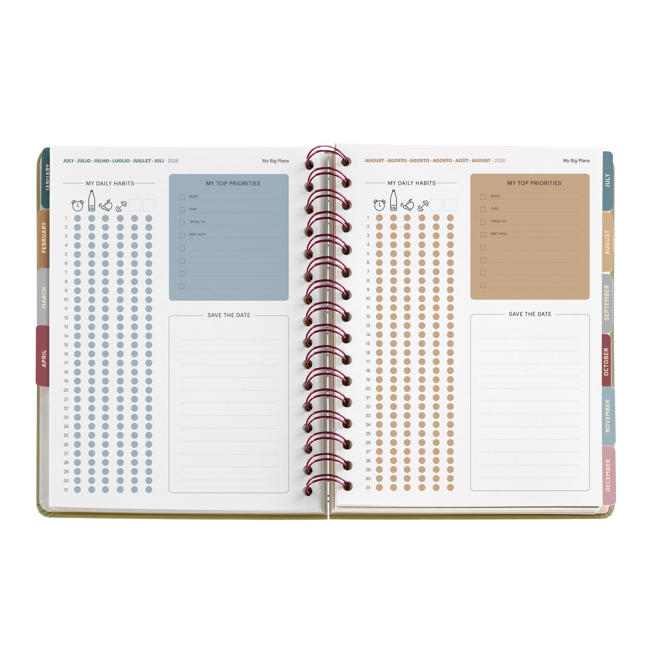 Extra fonctionnel : comprend des autocollants, un élastique, un planning mensuel, des habitudes saines et un espace supplémentaire pour les notes. Miquelrius Agenda Annuel 2025, 155 X 213 Mm, Un Jour Par Pag Miquelrius Agenda 2026 un jour par page similaire A5 (155 x 213 mm), couverture souple en polypropylène, spirale, papier 80 g/m², planificateur quotidien, catalan EN-PT, couleur rouge Collection Flower : design exclusif illustré par l'artiste Vilaldama, inspiré par l'observation directe de la nature. Inspirées par l'observation directe de la nature, les aquarelles botaniques de Vilaldama apportent beauté et fraîcheur à chaque page, faisant de cet agenda bien plus qu'un outil d'organisation : c'est une pièce unique qui accompagne votre quotidien avec style. Miquelrius Agenda 2024 25 D/P Plus College Azul - Agenda - Los mejores... Taille plus : 164 x 218 mm, similaire au format A5+, confortable pour bureau et pratique pour sac à main ou sac à dos. Découvrez l'agenda 2026 de la collection Flora d'EntreDos et l'artiste Vilaldama, créé spécialement pour Miquelrius, une proposition qui unit art et fonctionnalité dans chaque détail. Agenda Quotidien Spirale Couverture Rigide Miquelrius Agenda 2026 Journalier A5+ (155 X 213 Mm), Couverture Agenda Autocollants Planning