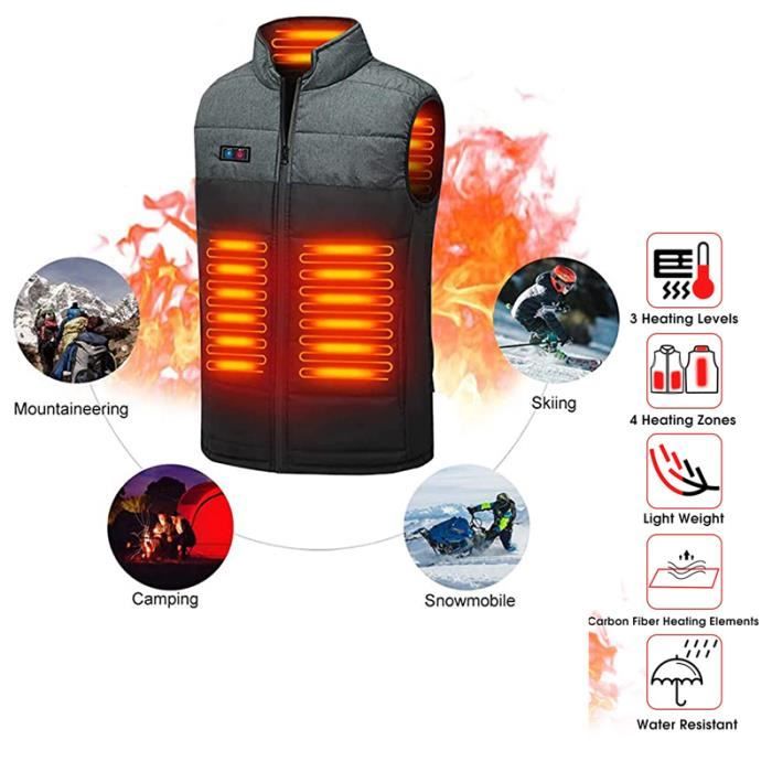 Le gilet chauffant se réchauffe en quelques secondes et diffuse une chaleur durable et uniforme, idéale pour les jours froids Interrupteur indépendant et 3 niveaux de chauffage : les zones des épaules, de l'abdomen et du dos du gilet chauffant peuvent être chauffées indépendamment, vous permettant de sélectionner facilement les zones que vous voulez chauffer Découvrez la prochaine génération d'équipements d'hiver intelligents. Durable, pratique et bien pensé : ce gilet chauffant allie fonctionnalité et style Le gilet chauffant est lavable en machine. Le gilet chauffant s'adapte à vos besoins en chaleur La fermeture éclair réglable à la taille garantit un ajustement parfait Matériau confortable : fabriqué en nylon et élasthanne. · Chaud et confortable : le chauffage intégré aide à garder le corps au chaud. · Facile à assortir Sécurité : le système de commutation étanche, les câbles protégés contre les surcharges et les matériaux résistants à la chaleur font de ce gilet chauffant un compagnon fiable dans toutes les situations. Gilet Chauffant - Non spécifié - XXL - 9 Zones de Chauffage - 3 Veste Chauffant Homme Topdot Gilet Chauffant Femme Avec Batterie 7.4V 16000mAh, 8 Zones De Chauffage, Gilet Chauffant à 3 Niveaux De Température, Veste Chauffante Pour Le Vélo, Camping, Travail En Extérieur Gilet Contrôle de la température à trois niveaux : avec 5 zones de chauffage intelligentes, ce gilet chauffant offre un confort individuel. Pratique à utiliser : après avoir retiré le module de chauffage, le gilet chauffant est facilement lavable en machine et facile d'entretien. Informations sur le produit : Nom du produit : gilet chauffant Matière : polaire Application : chaleur hivernale Style : simple et polyvalent Couleur : gris. Dimensions : L : 89 x 97 x 5 cm. Forte puissance de chauffage : le gilet chauffant utilise des éléments chauffants en fibre de carbone avancés qui diffusent une chaleur infrarouge lointain apaisante.