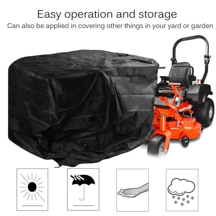 Veuillez vérifier la taille de votre tondeuse avant l'achat. Housse de tondeuse à gazon, housse de tracteur de pelouse durable en tissu Oxford imperméable et anti-UV 210D anti-poussière pour j. 5 / 5. 1 avis. 27,19 Vérifiez toujours les dimensions de votre tondeuse avant d'acheter pour le meilleur ajustement. Design résistant au vent : le cordon de serrage élastique à la base assure un ajustement sûr qui maintient la housse en place par temps venteux, offrant une sécurité supplémentaire pendant les tempêtes. Protection complète : protège contre la neige, l'exposition au soleil, l'accumulation de poussière et les chutes ; votre robot tondeuse reste impeccable quelles que soient les conditions météorologiques. Compact et pratique : conçue avec une poignée pratique pour une installation et un retrait rapides, cette housse peut être facilement pliée pour un rangement compact lorsque vous n'en avez pas besoin. Lorsqu'il n'est pas utilisé, il se replie de manière compacte pour un rangement pratique sans prendre beaucoup de place. Housse de siège de tondeuse à gazon imperméable à la poussière résistante à l'usure * Dimensions : 78 x 56 x 36 cm., Couleur : noir. * Rangement pratique : conçu avec une poignée pour une installation et un retrait faciles, cette housse peut être rapidement mise en place ou retirée. Caractéristiques : * Nom du produit : housse pour robot tondeuse à gazon. Taille parfaite et ajustement universel : mesure 78 x 56 x 36 cm, conçu pour s'adapter à la plupart des modèles de robots de tondeuse à gazon populaires. Mesurez toujours votre équipement avant de commander et envisagez une taille supérieure pour les tondeuses avec des accessoires supplémentaires ou des stations de charge Protection Robot Tondeuse 1, Noir, 40x30 Cm, Capot De Tondeuse - Housse Imperméable Robuste Pour Tondeuses à Gazon Protection Tondeuse Automatique Housse Imperméable * Protection contre les intempéries : cette housse offre une protection complète contre la neige, le soleil, la poussière et les déjections, ce qui la rend parfaite pour une utilisation en intérieur et en extérieur, pour garantir que votre robot tondeuse reste en parfait état.