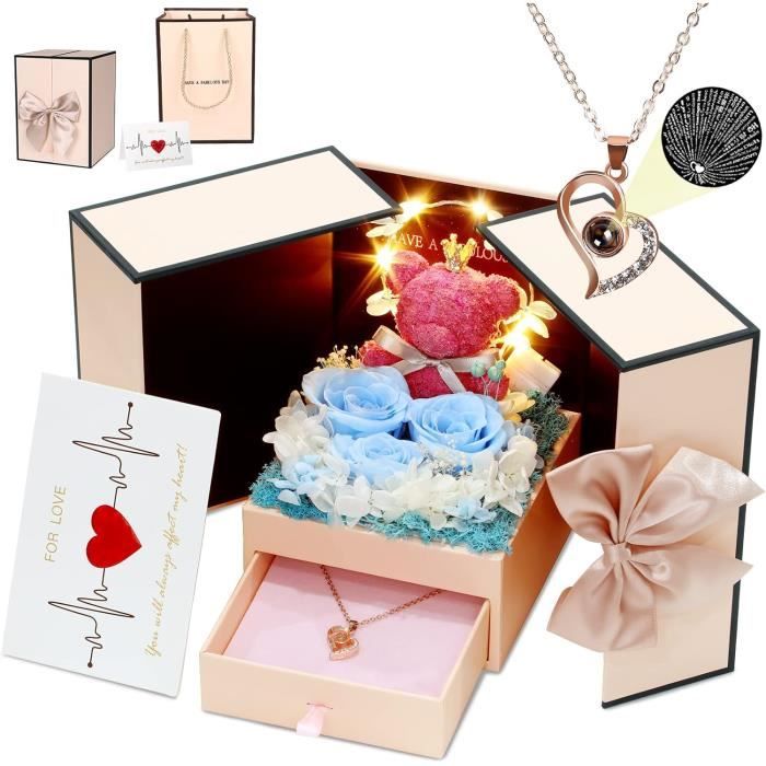 Le dos de l'ours rose est orné d'une bande lumineuse, de sorte que si vous l'allumez dans un endroit sombre, vous aurez une surprise romantique. Il vous suffit de pointer la lumière vers lui et vous pourrez le voir. Je t'aime de cent façons différentes. Diffusant le même message qu'une Rose Éternelle, l'Ours en rose est d'autant plus romantiques et mignon. Offrez ce coffret cadeau ours à votre maman préférée pour la fête des mères pour exprimer votre gratitude et votre amour. Sunia Rose Eternelle avec Bijoux Argent 925,Collier Coeur Boucles d'oreilles,Coffret Cadeau Femme,Rose Préservée avec Collier,Cadeau Anniversaire Femme,Amour Cadeau,Fete des Meres,Noël,Saint-Valentin Ours Fleur Roses Fleur Éternelle Fleurs Artificielles Cadeau Pour La Il fait remonter les souvenirs d'enfance et l'amour éternel pour les peluches. Cadeau pour Elle - Il s'agit d'un cadeau femme unique et romantique, parfait pour les copines, les amies, les mères et les amis à l'occasion de la Saint-Valentin, de Noël, des mariages, des anniversaires et d'autres journées spéciales ou comme cadeau unique pour vous-même. Lumière Chaude Romantique - Des lumières LED jaunes chaudes entourent les roses, ajoutant une atmosphère romantique unique qui peut être utilisée de jour comme de nuit. Ce serait un excellent cadeau pour Thanksgiving. Cadeau Violet Femme LOUVPY Rose éternelle Avec Collier – Cadeau De Saint- Valentin Pour Elle – Cadeau D'anniversaire Pour Femme/épouse – Véritable Rose éternelle Préservée Pour Maman/petite Amie/épouse (violet Sylvie Jewels Cadeau pour Femme - Coffret cadeau de nounours ours rose Bijoux collier en forme de cœur carte cadeau qui symbolise l'amour l'un pour l'autre Offrez-lui un magnifique ours rouge pour l'anniversaire de votre famille. Cela donne une immense faveur à la personne qui reçoit le cadeau. Offrez cette boîte ours rose le jour de Thanksgiving à quelqu'un que vous souhaitez remercier pour exprimer votre gratitude. L'ours est superbement fait et a une couronne sur la tête. Offrez à votre femme cet ours rose pour son anniversaire pour exprimer votre amour éternel et ce sera le moment le plus romantique au monde. Notre ensemble de fleurs éternelles est livré avec un sac cadeau, parfait comme cadeau.