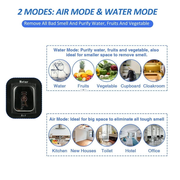 Générateur d'Ozone 2-en-1 avec Modes Air et Eau 40,000mg/h Machine à Ozone Ioniseur Purificateur d'Air Commercial & Industriel Désodorisant pour Eau Maison Voitures Bureau sous-Sol Garage Animaux Fumée Médium de barrière : céramique/quartz. Il désodorise au lieu de les masquer et les transforme rapidement en oxygène frais. 1 manuel d'utilisation avec étiquette. Excellent service client : Hocamel offre un service client professionnel et un support technique. Nous vous offrons une solution adaptée. Si vous avez des questions, veuillez vous connecter à votre compte Amazon, sélectionnez « Mes commandes », recherchez le numéro de commande et cliquez sur « Contacter le vendeur ». Il est idéal pour éliminer les odeurs dans les garages, les fermes, les caves, les hôtels et les zones animales. Assurez-vous que la pièce est vide lorsque vous utilisez le générateur d'ozone. Purificateur D'Air GéNéRateur D'Ions NéGatifs pour Voiture Supprimer le Ne pas entrer dans la pièce immédiatement après la fin de la production d'ozone. Une atmosphère plus saine Utiliser un générateur d'ozone dans votre maison peut améliorer considérablement la qualité de l'air. L'ozone est un puissant agent purifiant qui aide à éliminer les particules de poussière, les allergènes, et même certains virus et bactéries. En intégrant cet appareil à votre routine quotidienne, vous contribuez à un environnement domestique plus... 1 câble d'alimentation. Spécifications: Matériau : boîtier en acier inoxydable. Précautions : après l'activation de la fonction d'ozone, les personnes et les animaux domestiques doivent quitter immédiatement la pièce. Contenu de l'emballage : 1 générateur d'ozone. Couleur du boîtier : boîtier bleu avec panneau avant noir Type de prise : UE/UK Emballage : boîte en papier kraft avec tampons en coton perlé. Durable et robuste : ce nouveau générateur d'ozone de 2025 se distingue par son design sobre et son boîtier en acier inoxydable pour une construction durable. Purificateur d'air 2 en 1 à haute efficacité le purificateur d'air à ozone offre 10 g/h d'ozone. Il peut rapidement décomposer les particules dans l'air, y compris les odeurs, les produits chimiques toxiques et les moisissures Électrode : pâte hautement conductrice/filet d'électrodes en acier inoxydable. Son puissant ventilateur distribue rapidement l'ozone dans la pièce et réagit directement avec les polluants dans l'air, les textiles et les murs.