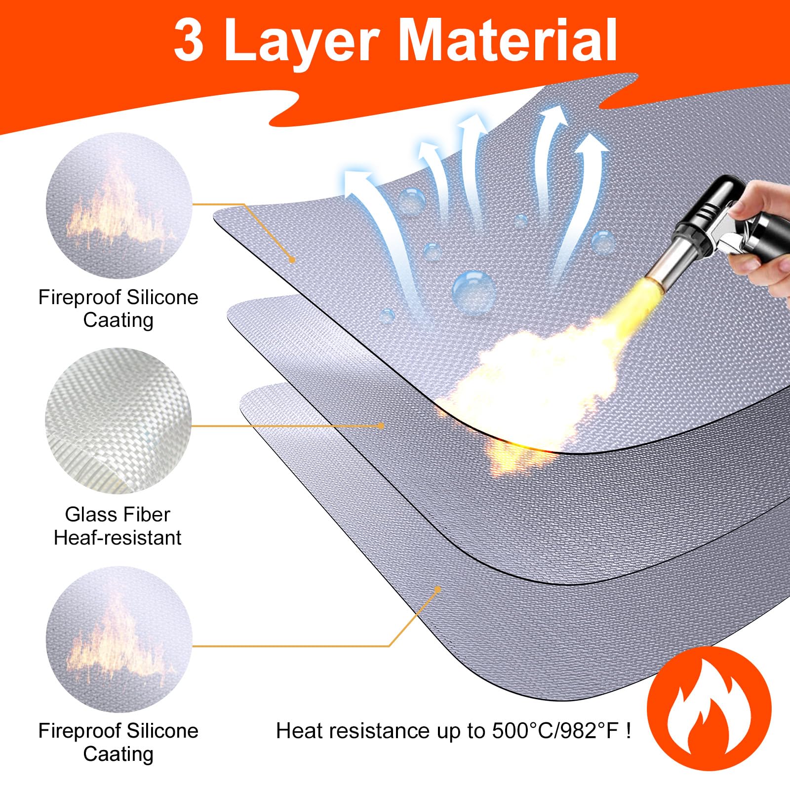 Lavable (ou essuyable avec un chiffon humide), sans odeur, à séchage rapide et réutilisable. Sa construction triple couche et son revêtement en silicone offrent une résistance exceptionnelle aux déchirures, aux pliages répétés, aux fortes pressions et aux températures élevées, prolongeant ainsi sa durée de vie de plus de trois fois. Protégez le plan de travail de la cuisine]Ce tapis Ignifuge résistant à la chaleur protège efficacement votre plan de travail de la chaleur et évite les dommages causés par les friteuses à air ou les caquelons à fondue, en particulier sur les plans de travail en bois ou en marbre Protection efficace sans résidus - empêche les brûlures, les dégâts causés par l'eau et les taches provenant d'appareils chauds. ✓ Antidérapant et doux pour... ✔Utilisation : Conçu spécifiquement pour la cuisine barbecue ! Tapis Air Fryer Tapis Résistant à La Chaleur, Tapis Résistant à La Le revêtement résistant à l'huile protège des éclaboussures de graisse, la couche ignifuge résiste à la chaleur des grillades et la base antidérapante protège les tables extérieures. Nous nous engageons à vous offrir la meilleure expérience d'achat. Tapis Résistant à La Chaleur Pour Friteuse à Air, Tapis En Fibre De Verre Ignifuge Pour Friteuse A Air Chaud Cafetieres De Comptoir Antiderapant Pour Plan De Travail De Cuisine Protection De Plan De Travail Impermeable 40 X 60 Cm Empêche les marques de brûlure, les fissures ou la décoloration permanentes sur vos plans de travail en pierre, en bois ou en stratifié, ce qui en fait le complément idéal de votre équipement de barbecue. ✔Tapis Résistant à la Chaleur : Fabriqué avec une double couche de fibre de verre et un revêtement en silicone de qualité alimentaire, il est imperméable, antidérapant, ignifuge et résistant à l'huile, et résiste à des températures allant de -50 °C à 600 °C. Mesurant 40 x 60 cm, il convient à la plupart des barbecues de table et autres petits barbecues d'extérieur.