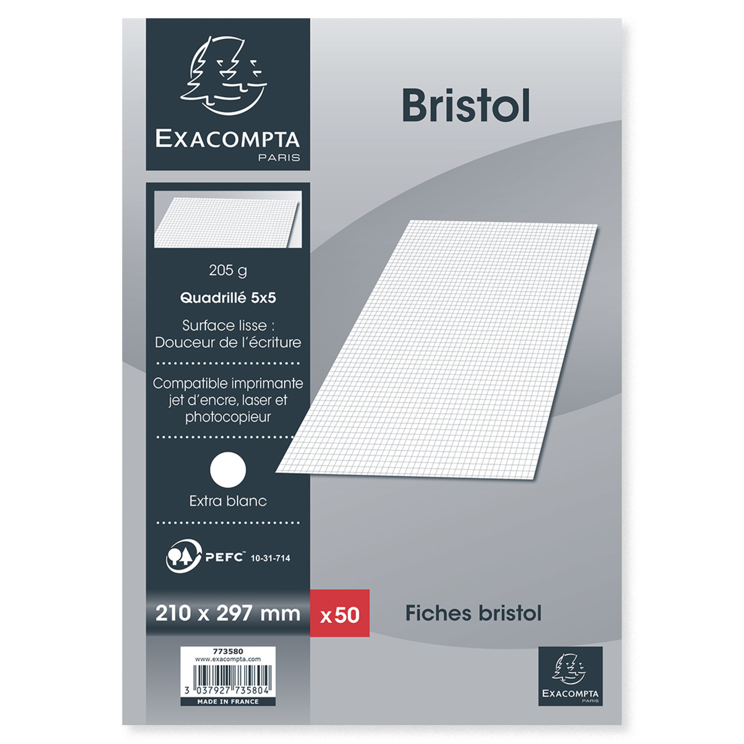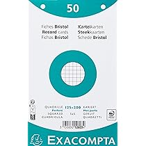 EXACOMPTA Étui de 100 fiches bristol perforées 125x200mm quadrillées 5x5 blanc - 13603E ... Carte Bristol 205 g à haut standard de qualité et de régularité Fabrication 100% Française, matière première et produit fini sont issus des usines du Groupe Exacompta-Clairefontaine. Fiche Bristol A5 Exacompta Réf. 13603E Carton De 12 étuis De 100 Fiches étui Fiches 125x200 Mm A l’heure du tout numérique, enseignants et élèves reconnaissent le bienfait de l’écriture, notamment pour mémoriser., Et cela se voit. CONDITIONNEMENT : étui coulissant pour protèger et conserver les fiches ; chaque sorte de fiches est présentée en étui de couleur différente pour être facilement reconnaissable et pratique à utiliser RÉGLURE : quadrillé 5x5 perforé ; Format : 125 x 200 mm ; Couleur : blanc Fiches Bristol 125x200mm, quadrillées, blanches, durables, 100 pièces Fiches Bristol quadrillées 125x200 mm - Paquet de 100, haute qualité Le bristol des fiches Exacompta est un papier Clairefontaine compatible avec imprimante jet d'encre, laser et photocopieur. LE BRISTOL des fiches Exacompta est un papier Clairefontaine compatible avec imprimante jet d'encre, laser et photocopieur Les fiches sont aussi les supports de tous les jours pour un usage personnel ou professionnel.