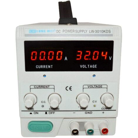 Sortie indépendante USB 5 V/2 A : Alimentez directement les périphériques USB tels que les cartes de développement Arduino et les modules de capteurs sans adaptateur supplémentaire, simplifiant ainsi le câblage sur un bureau. Cet équilibre entre efficacité et précision le rend idéal pour les expériences de précision nécessitant des paramètres sensibles. 【Port USB de charge (5V/2A)】 Sortie USB intégrée pour charger smartphones, tablettes ou alimenter des appareils USB directement depuis l’alimentation. Associé aux deux boutons de réglage, il illustre facilement les principes expérimentaux tels que la loi d'Ohm et les circuits série-parallèle. Durable de niveau militaire : le boîtier en aluminium est résistant aux chutes et aux rayures, et les composants internes ont subi un test de rodage de 1 000 heures, offrant une durée de vie continue de plus de 10 000 heures, soit trois fois plus que les blocs d’alimentation ordinaires. Gamme de tension et courant étendue] Fournit une tension de 0-30V DC et un courant de 0-10A, idéal pour alimenter des projets électroniques, des expériences de laboratoire, le chargeur de batteries et le prototypage. Alimentation DC Variable, 30V 10A Régulable à Commutation... Alimentation - FDIT - MCH-K3010D - 0-30V - 0-10A - Régulée et Réglable 【Affichage LED haute précision à 4 chiffres】 Surveillance en temps réel de la tension et du courant avec une résolution de 0., 01V/0., 1A pour un contrôle précis et des mesures fiables. Carcasse en aluminium légère avec dimensions compactes pour le stockage en laboratoire ou en atelier. 【Système de réglage double】 Combinez la molette grossière pour des ajustements rapides et la molette fine pour des modifications minutieuses (ex. Scénario studio : Centre de débogage d'équipement : Fournit des tensions personnalisées pour des appareils tels que les batteries de drones (11,1 V), les routeurs (9 V) et les caméras de sécurité (12 V), en les alimentant tous avec une seule unité. Bloc Alimentation DC 30V 10A Précision électronique Alimentation Labo UOHHBOE 30V 10A Réglable - Alimentation DC Précision Avec écran LED Et USB Alimentation DC Réglable 30V 10A UOHHBOE Affichage LED USB Alimentation de laboratoire à découpage - GVDA SPS-H3010 - 30V/10A USB 5V/2A Alimentation de laboratoire DC à commutation et à commande numérique avec réglage précis de la tension et du courant Conception à faible ondulation : ondulation de sortie ≤ 5 mV, fournissant une alimentation CC stable et pure aux circuits de précision (tels que les amplificateurs audio et les modules de capteurs) tout en évitant les interférences. Réglage à deux boutons pour une précision millimétrique : le bouton de réglage grossier localise rapidement les paramètres approximatifs, tandis que le bouton de réglage fin permet un étalonnage fin de 10 mV/1 mA. Des expériences professionnelles à la charge quotidienne, elle s'adapte parfaitement à de multiples scénarios. Description du produit Adjustable DC Power Supply 0-30V 0-10A Lab-Grade Regulated Switching Power Supply 4-Digit High Precision Display Une large plage de mesure de 0 à 30 V/0 à 10 A, avec une précision à 4 chiffres, garantit des mesures exactes et précises. Triple protection et boîtier en aluminium : ce bloc d’alimentation est un partenaire fiable et durable Avantages principaux des modules Assurance de sécurité complète : la protection contre les surcharges s’active instantanément lorsque le courant de sortie dépasse 1,2 fois la valeur définie ; la sortie est coupée en 0,1 seconde en cas de court-circuit ; et le bloc d’alimentation s’éteint automatiquement lorsque la température du corps atteint 60 °C, éliminant ainsi tout risque de sécurité. 10mV/1mA), parfaites pour équilibrer vitesse et précision.
