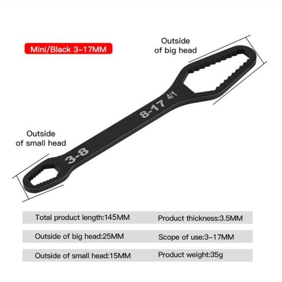 CLE A MOLETTE,8-22MM Black--Clé Torx universelle 6 25mm à serrage Clé Torx Universelle, Clé à Lunettes Réglable Auto-serrante à Double La clé à lunettes réglable extra longue peut augmenter le couple, faire une meilleure utilisation du principe de levier, économiser plus d'efforts Vendu par Grinding Tool Store. Services logistique et livraison gérés par AliExpress