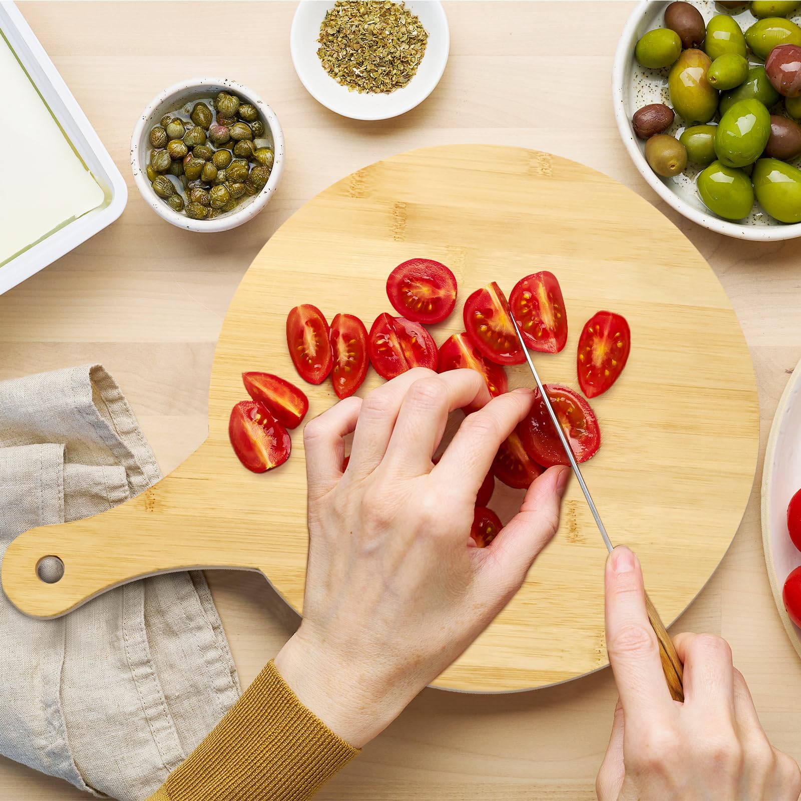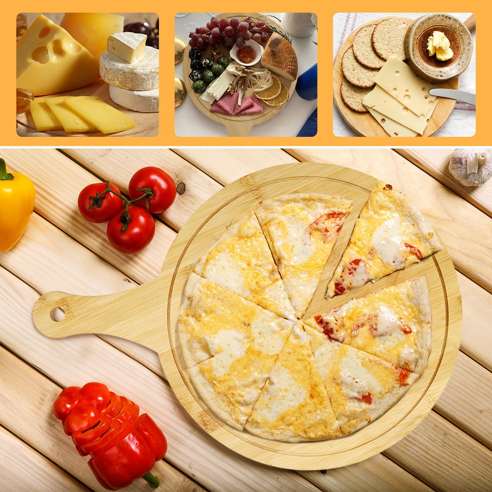 GOTOTOP Planche à Pizza Ronde Plateau à Pizza Rond Planche à Découper En Bois De Caoutchouc