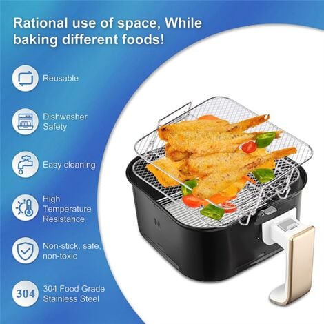 Rack De Déshydrateur à 5 Niveaux Compatible Avec Ninja Foodi Support Airfryer En Acier Inoxydable Avec Supports Empilables Accessoires De Vetements Pour Bebe Pour Friteuse A Air Qualite Alimentaire Déshydrateur Fruits Viande Air Fryer Support Déshydratant Pour Ninja Foodi De 6,5 Et 8 Litres, En Acier Inoxydable De Qualité Alimentaire 6.5&8 Accessoire Friteuse Air 5 Niveaux Tous les plateaux vont au lave-vaisselle et le boîtier peut être facilement essuyé avec un chiffon humide; Spécification: Matériau: acier inoxydable 304 de qualité alimentaire Déplier la taille: 8,5 x 5,0 pouces / 21,5 x 12,7 cm Compatible: friteuses à air, autocuiseurs et four de 6,5 pintes et 8 pintes. 【Haute qualité】 Le support de déshydrateur en acier inoxydable 304 de qualité alimentaire de haute qualité, robuste et non bancal, sûr et durable pour une utilisation de longue durée; Venez avec la conception d'ourlet lisse élimine les bavures rugueuses sur les bords, protégez vos mains des rayures; Principaux points forts ; Marque. BesDirect ; Matériau. Acier inoxydable ; Nombre de plateaux. 5 ; Peut passer au lave-vaisselle. Oui ; Fabricant. BesDirect 【Cinq couches empilables】 Il y a 5 plateaux amovibles qui offrent beaucoup d'espace pour sécher tout, des fruits et des viandes, et le motif de grille étroite du support de déshydrateur garantit que même vos fruits et viandes les plus délicats ne s'affaissent pas, ne tombent pas ou ne tombent pas tout en restant appropriés circulation d'air; Facile à utiliser : ce support de déshydrateur pour friteuse dispose d'un design empilable à 5 niveaux, offrant une commodité supérieure 【Facile à utiliser et à nettoyer】 Ce support de déshydrateur pour friteuse à air est compact et chaque étagère a été bien déshydratée uniformément en peu de temps, un bon flux d'air, facile à utiliser et à ranger, bien et se replie ensemble, le nettoyage est facile. 【Support de déshydrateur alimentaire】 Le support de déshydratation empilable à cinq couches peut déshydrater les fruits et la viande, verrouiller les nutriments, pourrait mettre de la nourriture en bloc dessus, grâce à Ninja Foodi peut créer des aliments délicieux et sains.