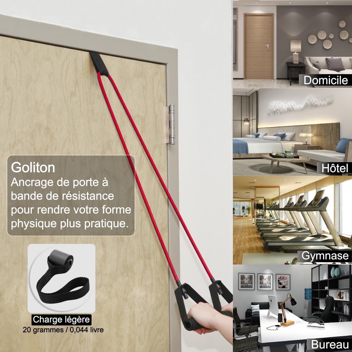 Sangle en caoutchouc Kevlar pour machine musculation de gimnases Caractéristiques : Nom de la pièce : bande de résistance d'ancrage de porte. équipement Fitness Maison Réglable Ancre De Porte - Idéal Pour Tes Entraînements à La Maison Elastique Musculation Porte Caractéristiques : Fabriqué en métal, solide et résistant à l'usure, adapté pour une utilisation à long terme. Contenu de l'emballage : 1 x bande de résistance d'ancrage de porte., Remarque : 1., La couleur réelle de l'article peut être légèrement différente de celle des photos présentées sur le site Web en raison de nombreux facteurs tels que la luminosité de votre écran et la luminosité., 2., Les mesures étant prises à la main, les tailles indiquées peuvent varier légèrement. Rappel des tailles : la porte avant utilisation vérifiez votre compatibilité pour les spécifications JUVA Butée et Cale Porte Magnétique - Stop Porte Mural en Caoutchouc... Springos Expander 5 X Sangles En Caoutchouc Ancrage De Porte 2 X Sangles De Pied Bandes De Resistance Colorees Pour La Musculation Et Le Renforcement Musculaire Les points de contact sont fabriqués en caoutchouc souple et en flanelle, ce qui n'endommagera pas la porte. Dimensions : 15 x 9 x 10,5 cm., Couleur : noir., Poids : environ 450 g. Convient pour les portes avec un écart supérieur à 3,2 mm et une épaisseur inférieure à 50 mm.