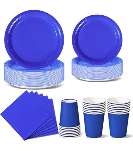 Kit vaisselle jetable Bleu clair - Le meilleur de la fête Nappe Et Serviettes Papier POPOYU 69 Pièces Vaisselle Jetable Anniversaire Bleu Clair,Assiette Carton Papier Tasses Serviettesr Nappe Pour Fête De Noël,Vaisselle De Fête Enfants,Barbecue Les Fêtes Les Pique-niques(16 Invités Vaisselle Biodégradable Anniversaire Mariage Ils peuvent être utilisés comme plateaux papier alimentaire,mais aussi comme analgésiques DIY pour enfants,couverts jetables,fêtes à thème et à des fins extérieures telles que pique-nique,camping ou randonnée. Le paquet comprend 1 nappe 16 gobelets en carton 16 cartons de 7 pouces 16 cartons de 9 pouces 20 serviettes en papier [Design] Set de vaisselle avec conception de couleur unie, 12 couleurs différentes pour le choix. Avec le kit vaisselle jetable bleu clair de 50 pièces, vous pouvez transformer votre événement en un moment inoubliable sans tracas ! Ce kit comprend 10 grandes assiettes en carton de 23 cm, 10 petites assiettes de 18 cm, 10 gobelets en carton et 20 serviettes en papier, ce qui le rend parfait pour toute célébration Vous pouvez l'utiliser pour différentes occasions, que ce soit une fête, un anniversaire ou un mariage. 16 Pièces Assiettes Jetables Bleu Clair Assiettes Dessert Carton... Après la fête, vous pouvez passer plus de temps avec votre famille ou vos amis et moins de temps à nettoyer. [taille]: la taille de la vaisselle de couleur unie est d'environ 7 pouces (18cm) pour un petit plat; Grande assiette de 9 pouces (23 cm); Serviette en papier 16,5 cm x 16,5 cm, dimensions dépliées: 33 cm x 33 cm; Nappe 137 * 274 cm; tasse (7,5 * 8,5 cm);