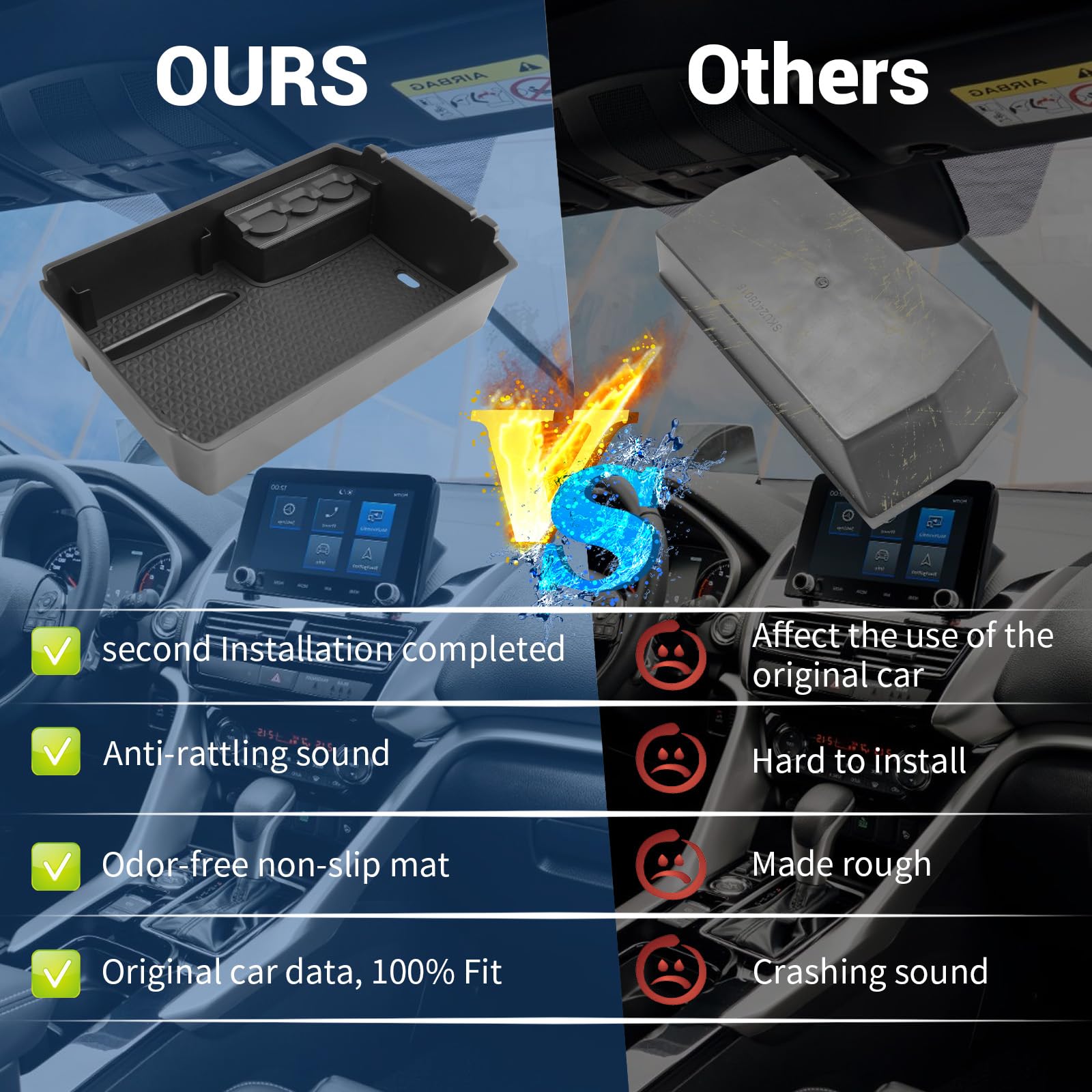 Organisateur Console Centrale Eclipse Cross Sxcy Compatible Vw Touran Accoudoirs Boîte Rangement Organisateur Tapis Antidérapant Amovible Doté du coussin antidérapant pour prévenir la glissade et le bruit des objets dans la boîte de rangement. CDEFG Copatible avec Peugeot 208 2008 e-208 e-2008 2020... Modèle compatible : boîte de rangement pour accoudoir CDEFG pour Mitsubishi Eclipse Cross 2018, 2019, 2020, 2021, 2022, 2023, 2024, 2025, personnalisé pour la voiture d'origine pour un ajustement serré et sans cliquetis S'adapte parfaitement Conçu avec un placement parfait pour la console centrale de votre voiture, aucune modification nécessaire 【Liste d’emballage】Eclipse Cross Insert Organizer Tray*1, tapis antidérapants. CDEFG Compatible avec Mitsubishi Eclipse Cross 2018 【Commode à installer】Parfaitement adapté à la voiture originale, installation directe sans besoin de modification. Il vous permet de placer de petits objets (lunettes de soleil, pièces de monnaie, stylos, carte d'identité, clés) à portée de main à tout moment. La console dispose de fentes ouvertes pour les câbles et autres câbles. Il est plus pratique pour organiser vos petits objets : tels que les téléphones mobiles, les cartes, les portefeuilles, les coins, les stylos, les clés, les lunettes de soleil, etc. Tout en un Maximise le volume du plateau Arkana et comprend l'organisation des pièces. 【Haute qualité】Fait du plastique ABS de haute qualité, résistant à l’eau et aux moisissures. Si vous rencontrez des problèmes, veuillez contacter notre équipe prête à vous aider. Antidérapant Tapis antidérapants (amovibles) pour empêcher les objets de glisser et de bouger.