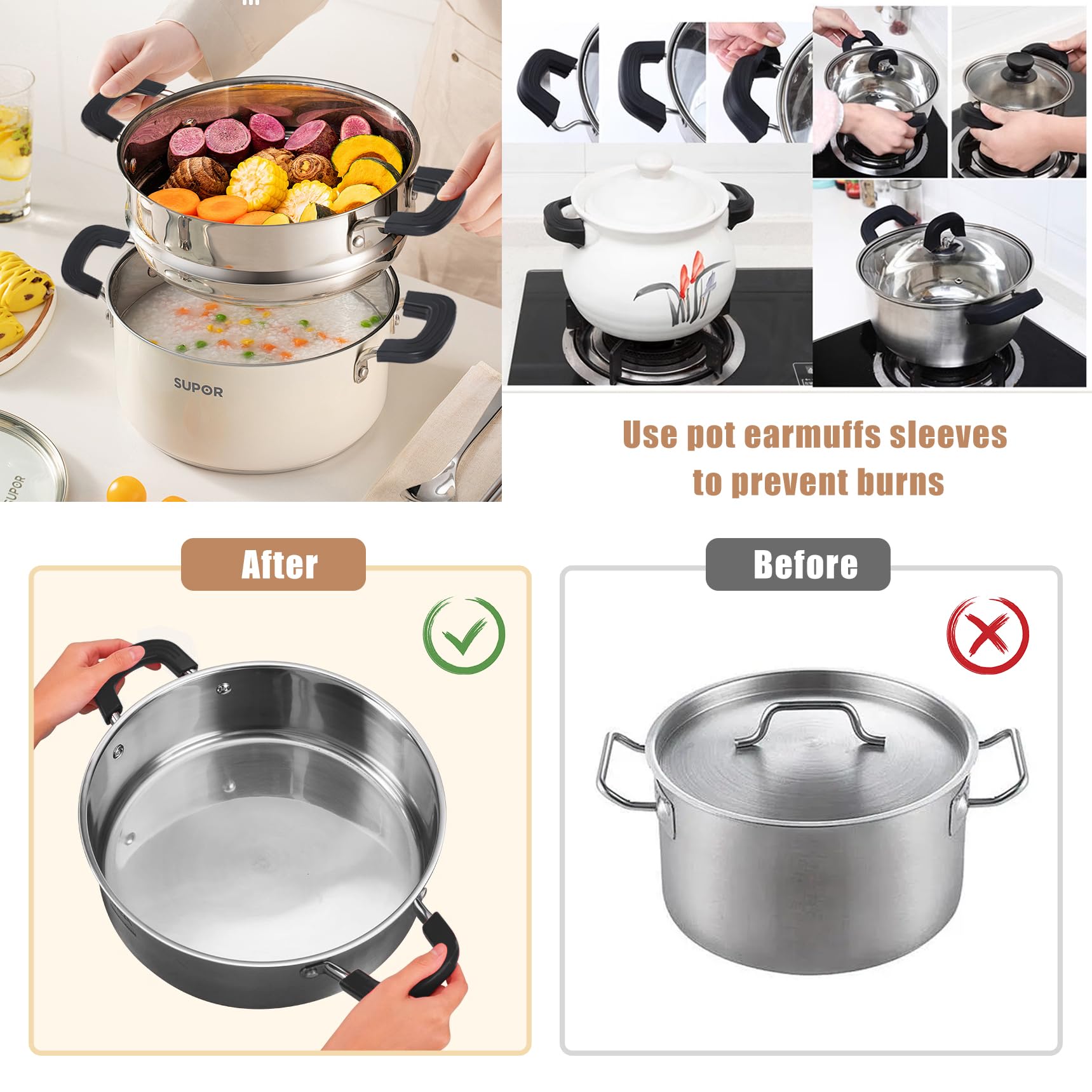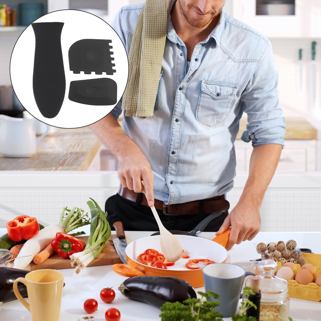 Ciieeo 1 ensemble de housses de poignée en silicone pour Poignée Ingenio Tefal 6 Pièces Poignées En Silicone Pour Casseroles, Support De Poignée Poignées Protection Pot Fonte Wok 【Facile à nettoyer】 Le couvercle de la poignée du manchon de casserole est pratique pour le lavage grâce à sa surface lisse et antiadhésive. 【Flexible et durable】 L'ensemble de couvercles de poignée de poêle en fonte est fabriqué en silicone de haute qualité, sans BPA et inodore, anti-brûlure et isolé thermiquement. Ils peuvent être facilement lavés à la main à l'eau tiède ou au lave-vaisselle sans vous faire gagner du temps et des efforts. Lot de 2 poignées de rechange pour casseroles et poêles, ustensiles de cuisine amovibles à 1 trou, poignée latérale courte. 5,51€. 25,51€ Prix conseillé Matériau durable : notre couvercle de poignée de casserole est fabriqué en silicone avancé doux et de haute qualité, résistant à la chaleur, qui a une bonne isolation thermique et une bonne flexibilité, durable, inodore, anti-brûlure et facile à nettoyer. Lot de 3 supports de poignée en silicone antidérapants pour woks en fonte, poêles, plaques de cuisson, poêles, four (rouge, L) · Petit. $17.57$17.57. In Stock Notre service client vous répondra à temps. Évitez efficacement les résidus alimentaires laissés dessus.