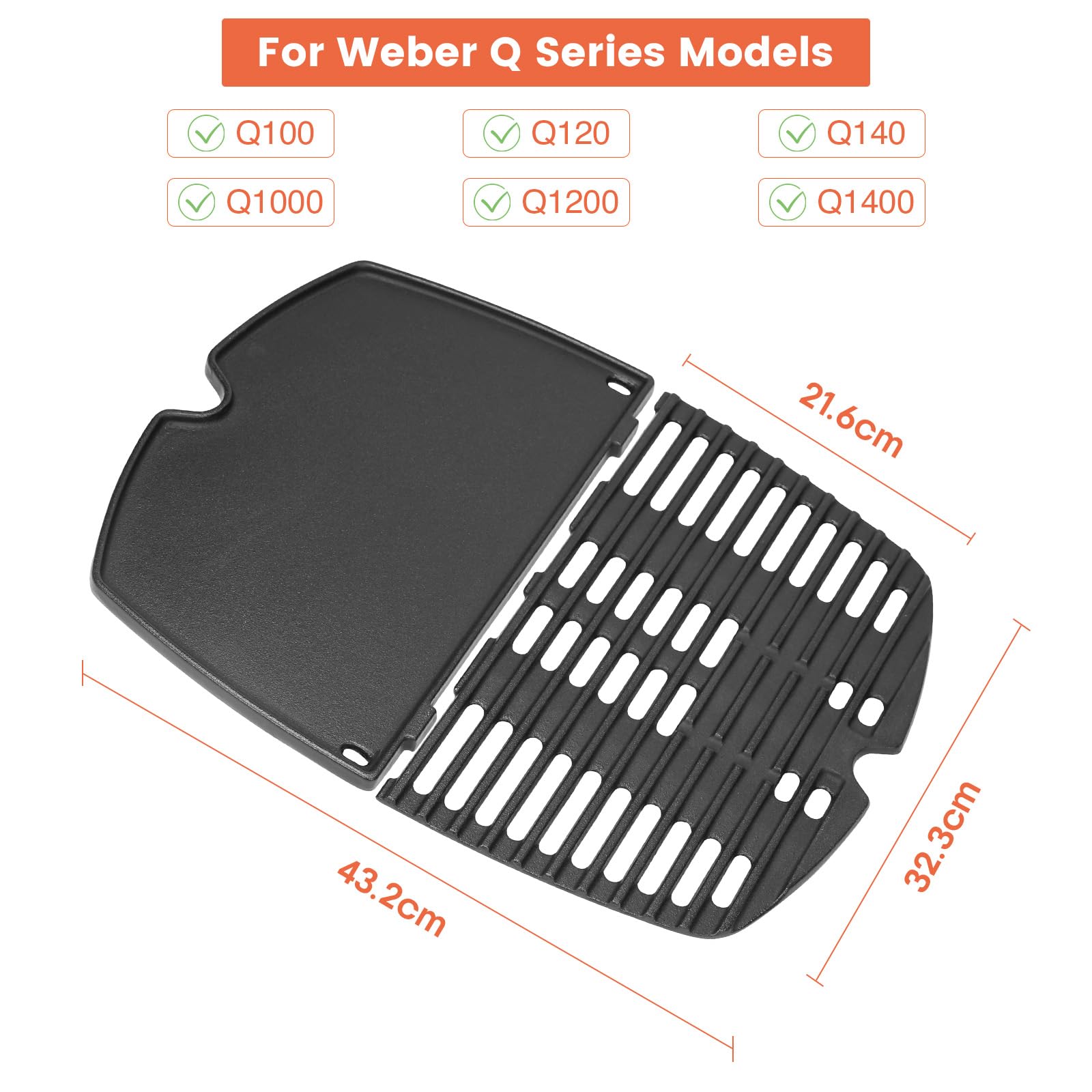 Compatible avec les modèles Weber 6558/7644., La grille de cuisson en fonte de haute qualité préserve la saveur originale des aliments. Lot de 2 grilles en Fonte émaillée pour barbecue Q1400 et Q140 - Weber Contenu : 1 plaque de gril + 1 grille + 2 clips de fixation. 🔥【Conception pratique】La grille du gril est divisée en deux parties pour un retrait et un nettoyage faciles. Ce gril de remplacement intégré bien conçu ajoute une toute nouvelle surface de cuisson à votre ancien gril, donnant à votre gril Weber une nouvelle vie et vous permettant de profiter de chaque instant de grillades ! Grille De Cuisson Q1200 Barbecue électrique Weber Q 1400 FORYEYC 32 X 22CM 6558 Plancha De Cuisson Pour Weber Q100, Q120, Q140, Q1000, Q1200, Q1400 Accessoires Barbecue, Plaque Plancha Gril à Gaz Pièces De Rechange Pour Grille Et Plaque Fonte De Rechange Pour Weber Q100 Q1200 🔥【Matériaux de haute qualité】Fabriquée en fonte solide et durable, sa construction robuste assure une répartition uniforme de la chaleur. La surface de cuisson lisse est dotée de deux orifices d'évacuation de la graisse intégrés pour éliminer l'excès de graisse. 🔥【Améliorez votre barbecue Weber】Si vous souhaitez moderniser votre barbecue Weber des séries Q100 et Q1000, cette plaque et cette grille sont les accessoires parfaits. Elle résiste efficacement à la rouille et à la déformation. Plaque de cuisson pour barbecue à gaz Weber Q100, q1200, Q1400, q1000 Elle est suffisamment robuste pour supporter des températures élevées au fil du temps et répartir la chaleur plus uniformément, créant de belles marques de cuisson et une saveur exceptionnelle. Compatible avec les modles Weber 6558/7644. La grille de cuisson en fonte de haute qualit prserve la saveur originale des aliments.Dimensions43,2 x 21,6 x 1,27...