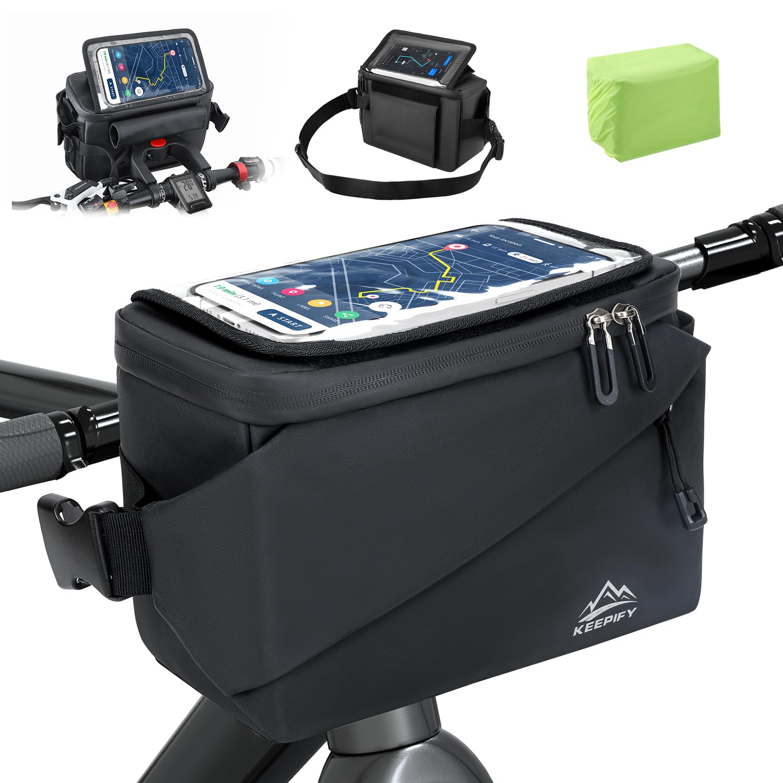 Sacoche guidon vélo Vaude Trailfront Compact Sac à Déjeuner Vélo XIQI Sacoche De Guidon Pour Vélo Électrique Et Classique, 3 En 1 Avant Avec Adaptateur Et Bandoulière Amovible (4 L Sacoche Velo Parfait pour le travail, le camping ou les voyages courts. Sacoche de vélo isolée : cette sacoche de guidon peut être utilisée comme sac de vélo ou sac à déjeuner. Écran tactile sensible : sur le dessus du sac se trouve une poche tactile transparente en TPU de 17 x 11 cm, qui sert non seulement à ranger votre téléphone portable, mais aussi assez sensible pour utiliser le téléphone portable pendant la conduite sans avoir à le retirer. Sacoche guidon vélo Vaude Trailfront Compact Montage facile et stable : 2 sangles à l'avant du guidon, 1 sangle qui passe sur le tube de direction et 1 boucle fixe assurent une fixation sûre au guidon pour que rien ne puisse glisser. Installation rapide:Le design de désassemblage rapide facilite le montage et le démarrage de votre sac. Capacité de stockage 4L:Ofir un espace généreux pour... Sac multifonction 3 en 1 : grâce à la sangle amovible et réglable, cette sacoche de vélo pour porte-bagages peut également être utilisée comme sac à bandoulière. Il dispose d'une couche de feuille d'aluminium épaisse qui sert de couche isolante et garde vos aliments au chaud ou vos boissons froides.