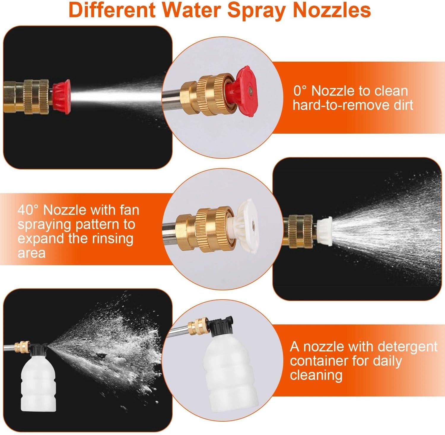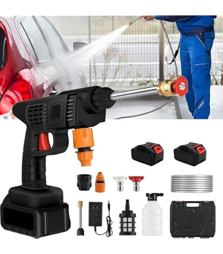 Nettoyeur Jardin 5m Tuyau 90 Bar Nettoyeur Haute Pression Sans Fil Portable Avec 5m Nettoyeur Haute Pression Avec Batterie 【Environnemental & économie d'eau】 : le nettoyeur haute pression sans fil se caractérise par un design sans fil, léger et compact. Nettoyeur Haute Pression Sans Fil 60 Bar, 300 L/h, Buse 6-en-1, Tuyau 5m – Nettoyeur Portable... Ce nettoyeur haute pression mobile, 48 V Max 90 bars, est équipé d'un moteur puissant et d'une vitesse de 80 000 tr/min, offrant une pression d'eau stable. Il est idéal pour le nettoyage de voitures, vélos, motos, et plus encore. Avec ses buses multifonctionnelles, il permet de nettoyer efficacement divers surfaces Le nettoyeur haute pression a une distance de pulvérisation allant jusqu'à et nettoie les taches plus efficacement. Le tuyau de 5 m avec panier filtrant peut filtrer efficacement les impuretés, les particules, les feuilles de déchets ou la boue et puiser facilement de l'eau dans des seaux, des piscines, des rivières ou d'autres sources d'eau, ce qui en fait un compagnon idéal pour les tâches de nettoyage en extérieur, par exemple pour les vélos et les motos. iOCHOW 580PSI Nettoyeur Haute Pression Portable: Nettoyeur Électrique sans Fil à Pression Le moteur en cuivre et la batterie haute capacité sont conçus pour garantir une grande puissance de travail et une longue durée de vie pour un fonctionnement efficace. Pression du produit : 90 bar., Vitesse : 50., 000 tours/minute. Domaine d'application : lavage de voitures, arrosage de fleurs, arrosage de légumes, pulvérisation, nettoyage de jardins, etc. Nous avons également une bouteille de mousse pour appliquer de la mousse avant le nettoyage. 【Buses Multifonctionnelles】 : Ce nettoyeur haute pression sans fil offre 3 options de buse : Mode spot, mode éventail et mode pulvérisation. 【Batterie Rechargeable】 : ce nettoyeur haute pression portable est équipé de batteries rechargeables. 【Excellent Moteur】 : le nettoyeur haute pression alimenté par batterie est de 90 bars, équipé d'un moteur puissant, et la vitesse de 50000 tr/min offre une sortie de pression d'eau stable et une fonction d'entrée d'eau pour le processus de nettoyage, ce qui est suffisant pour la plupart des travaux tels que le nettoyage de voitures, l'arrosage de jardins et le nettoyage de cours. Longueur du tuyau d'eau : 5 m.