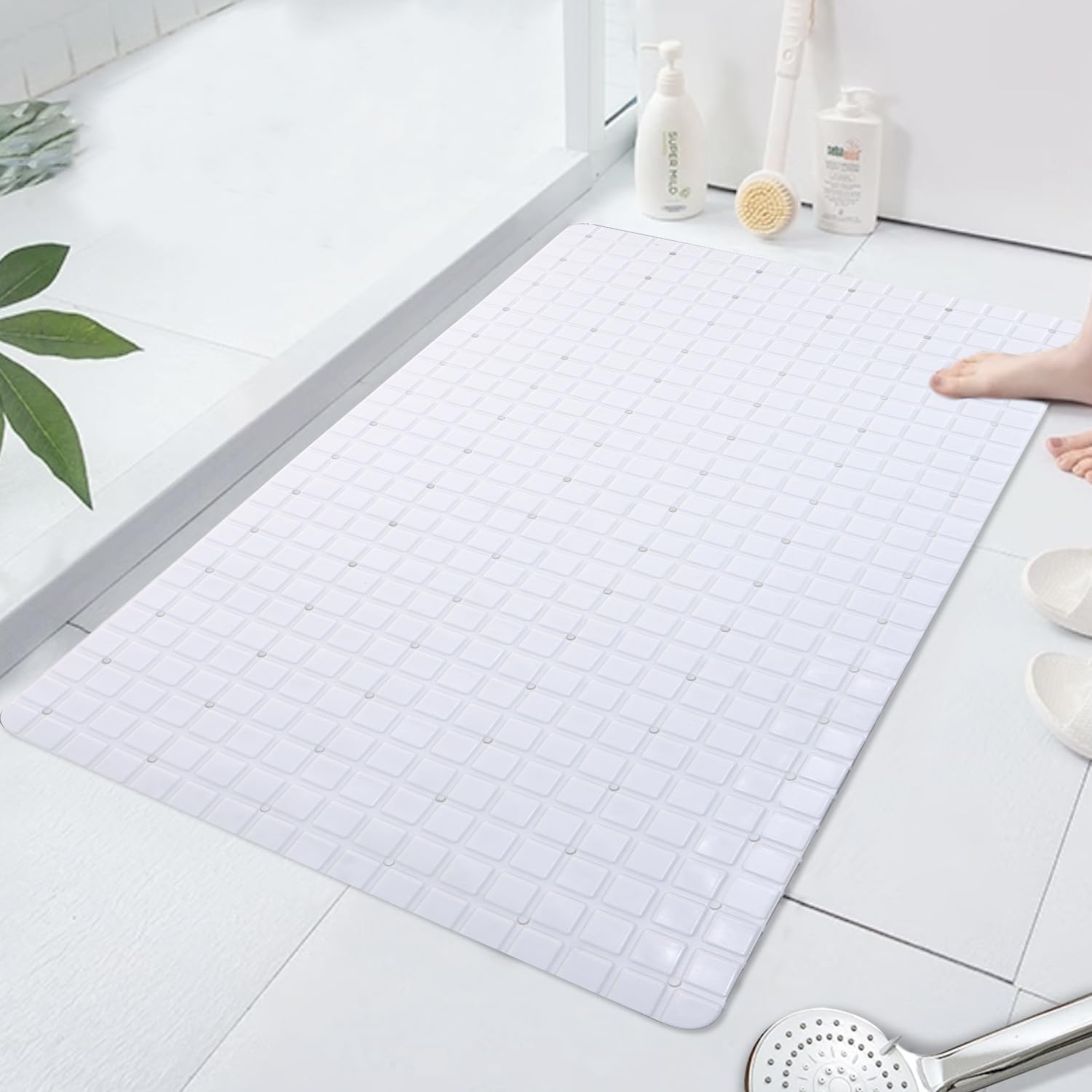Tapis de Douche Antidérapant Caoutchouc | Ultra Résistant Surface en PVC souple, loin du sol dur et froid et offrant un soutien chaud et confortable à votre corps. Tapis De Douche Antidérapant Pour L'intérieur De La Douche Tapis Sécurité Douche 40x70 Cm Tapis antidérapant : les ventouses puissantes à l'arrière offrent une forte traction et stabilité. Placez le tapis de douche directement sur le drain et l'eau coulera directement à travers le tapis. Pas besoin de vous soucier du blocage de l'eau. Sûr à utiliser : fabriqué en PVC recyclable de haute qualité. · Tapis antidérapant : les ventouses puissantes à l'arrière offrent une forte traction et stabilité... TAPIS DE DOUCHE EN PIERRE INTÉRIEUR BLANC Confortable debout : 40 × 70 cm, idéal pour tout bain ou douche. Performance de drainage : trous de drainage naturels. Les tapis de bain antidérapants pour l'intérieur du bain peuvent être fermement absorbés sur le sol lisse et ne bougeront pas à volonté lorsque vous prenez un bain.