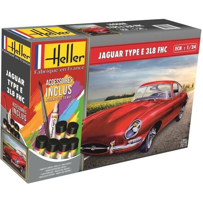 Dimensions maquette montée : 18,5 x 9,8 cm. Description du produit Maquette plastique à assembler d'une voiture au 1/24ème : la JAGUAR TYPE E 3L8 FHC., 85 pièces. Avertissement De Sûreté Avertissement : Ne convient pas aux enfants de moins de 14 ans. Jaguar Type E leMans - Starter Set Heller 56783 À utiliser sous la surveillance d’un adulte Contenu du coffret 1 maquette à monter - décalcomanies - peintures - 1 pinceau - 1 colle - plan de montage. Maquette voiture : JAGUAR TYPE E 3L8 FHC - Heller 80709 Maquette Plastique 85 Pièces à Monter Heller Maquette Voiture 56709 JAGUAR TYPE E 3L8 FHC Inclus Peintures Principale Colle Et Pinceau 124 3279510567090 Jaguar Type E Pace Un choix parfait pour enrichir une collection automobile miniature et revivre la légende de la Type E grâce à une maquette accessible et détaillée. Commandez sans attendre la Heller 56709 – Jaguar Type E 3L8 FHC et donnez vie à ce chef-d’œuvre du design britannique